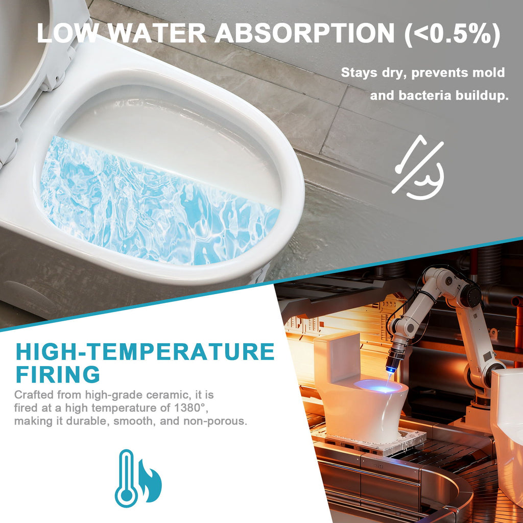 - Effortless Cleaning Design: Fully glazed, skirted body resists stains and bacteria with no crevices to trap dirt.