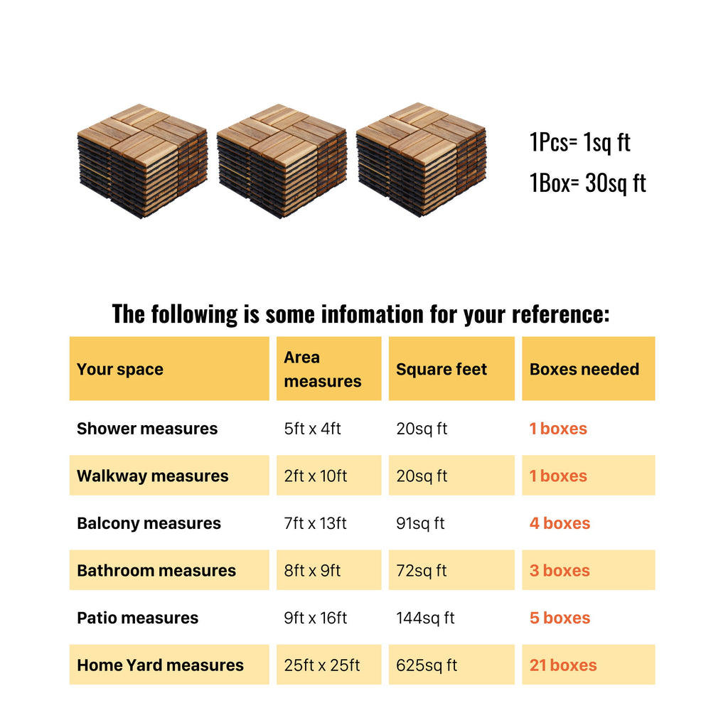 Interlocking Deck Tiles Checker Pattern 12" X 12" Square Acacia Hardwood Outdoor Flooring - Yellow