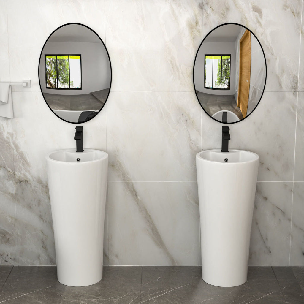 15" Pedestal Sink With Space Saving Design, Smooth Non Porous Surface For Powder Rooms - White