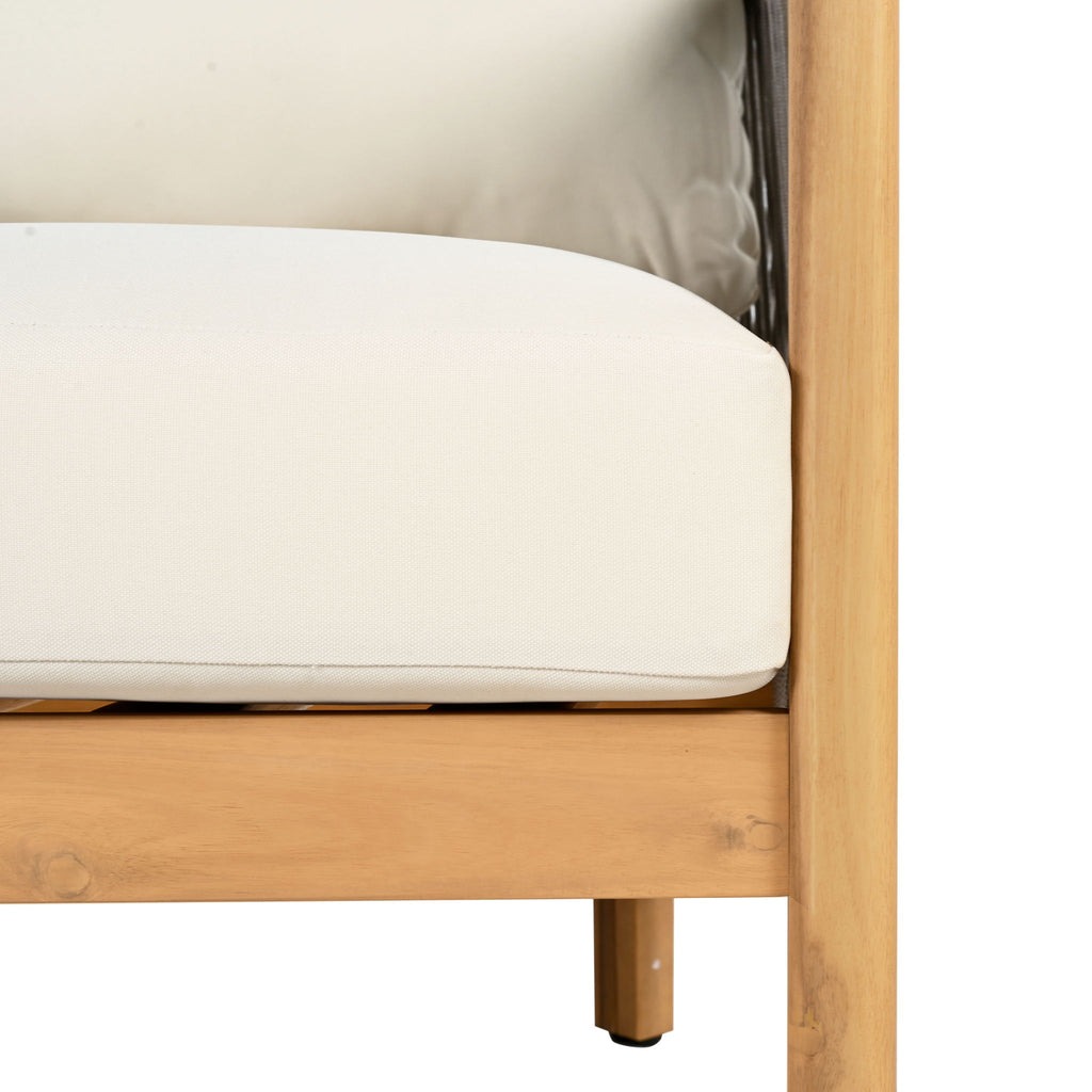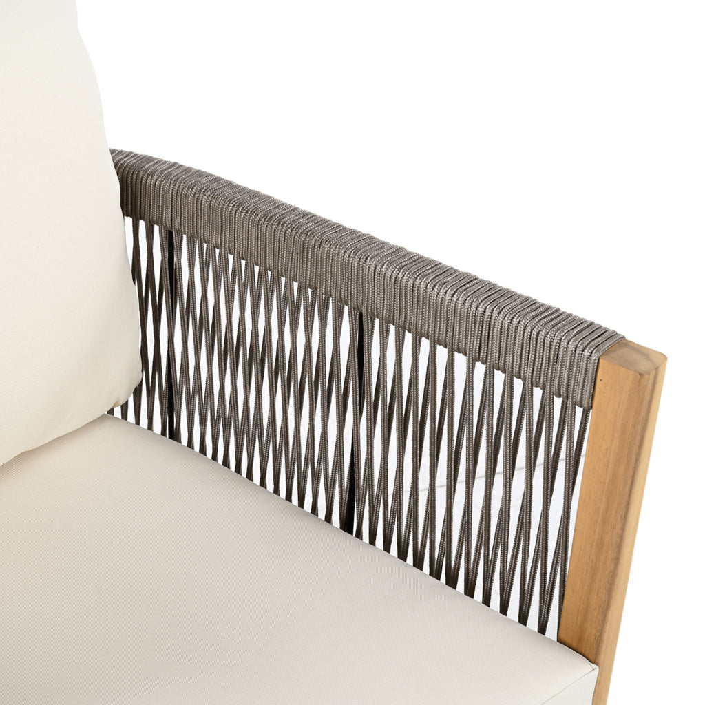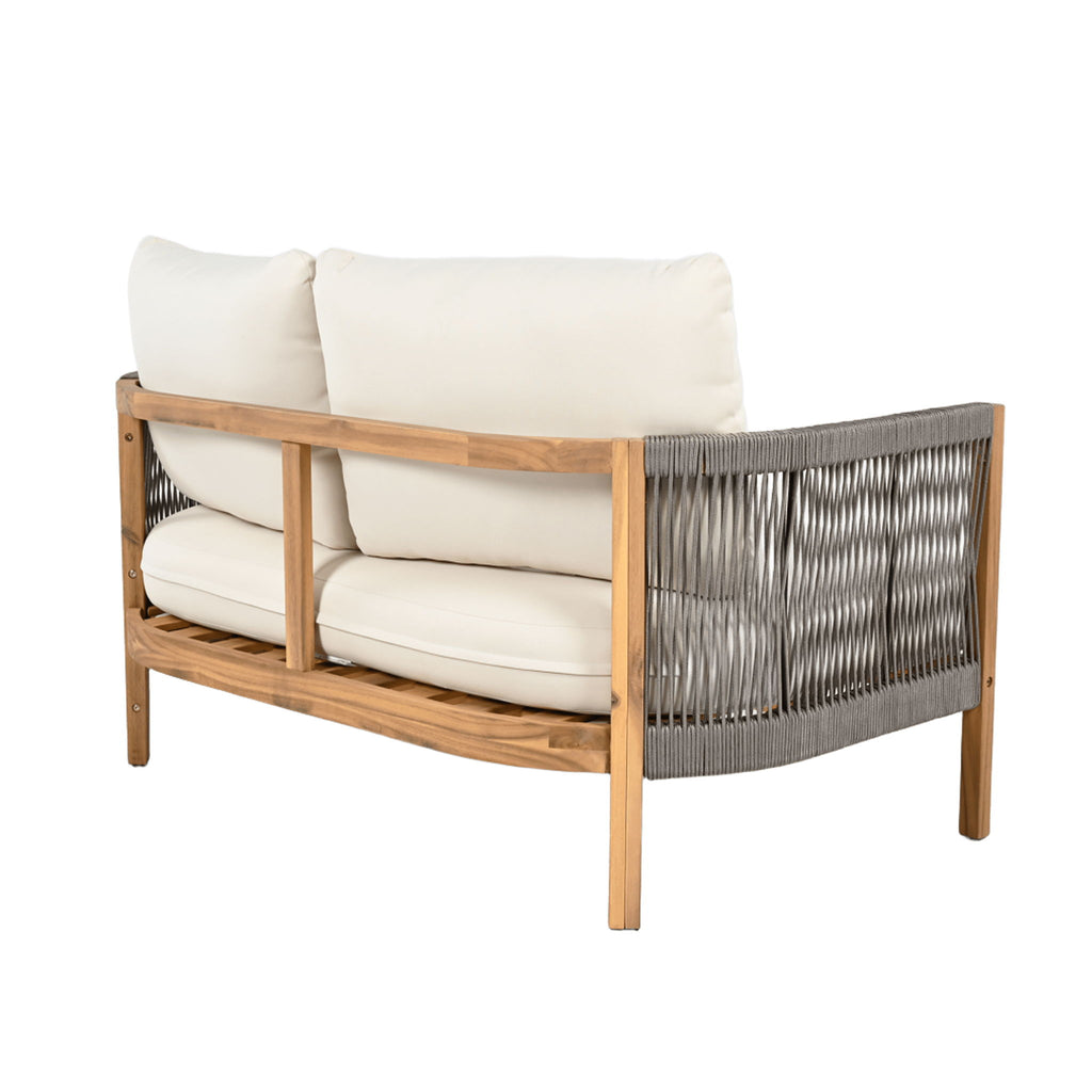 2 Pieces Outdoor Acacia Furniture Set, Woven Rope Outdoor Patio Loveseat, 2 Seat Deep Seating Group With Cushions And Coffee Table For Porch - Teak / Gray / Beige