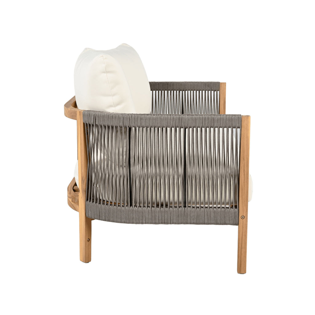 - Crosswoven Rope Detailing: The sides are adorned with intricately woven rope accents, adding a touch of rustic charm and enhancing the chair's visual appeal.