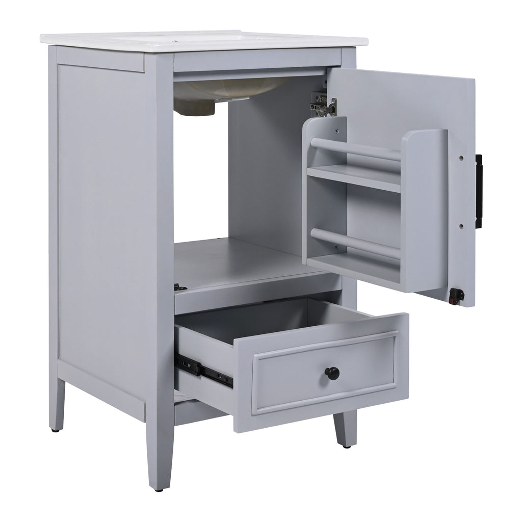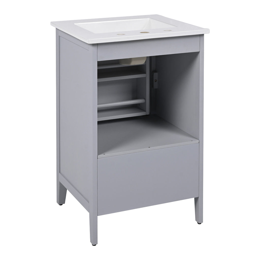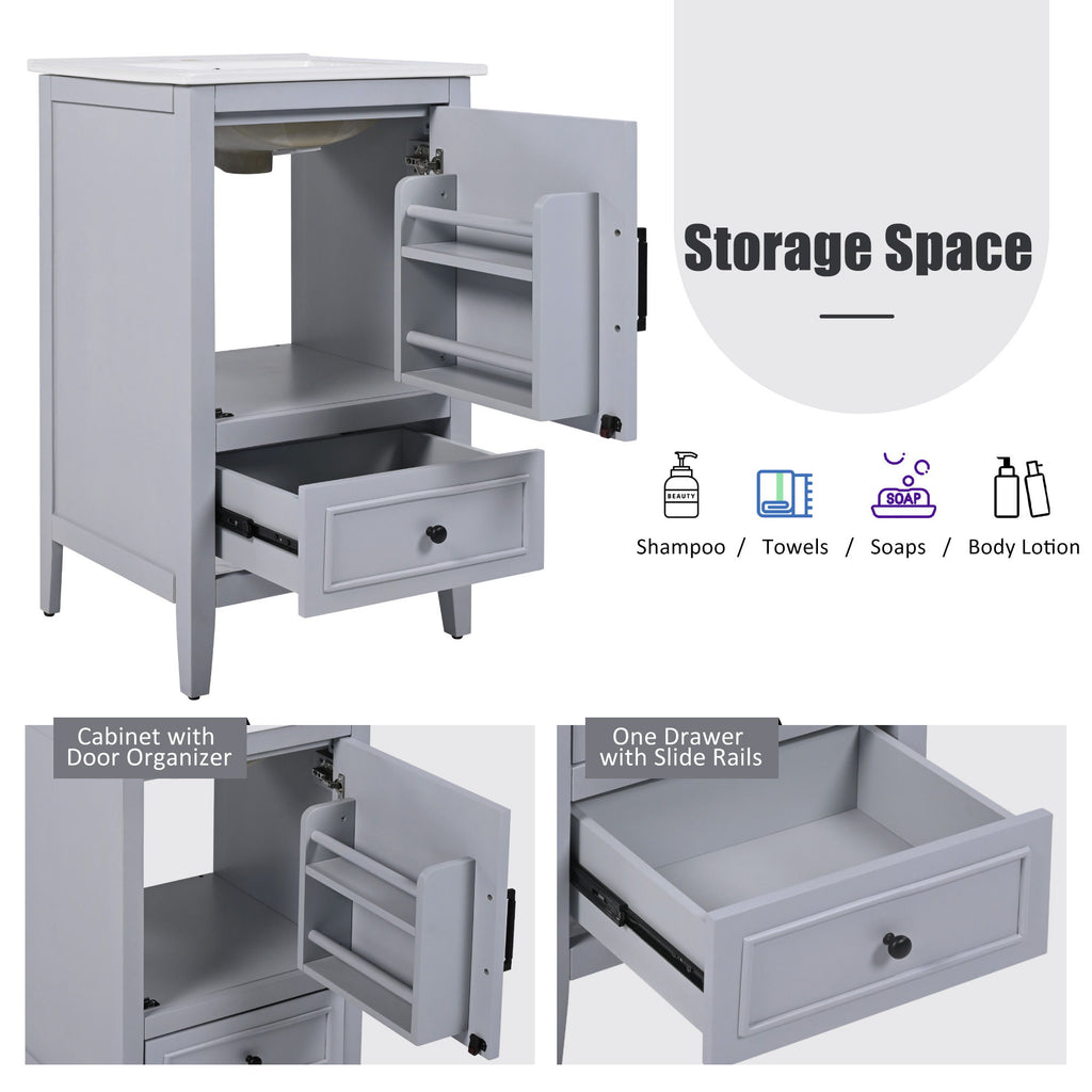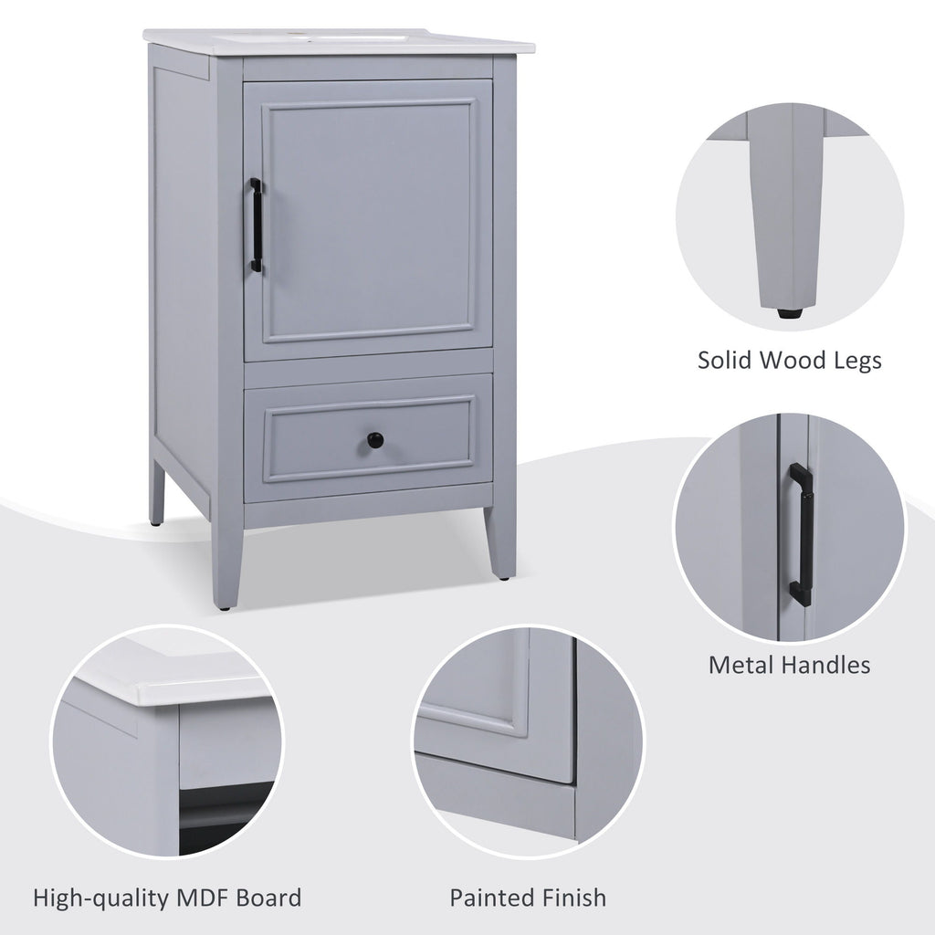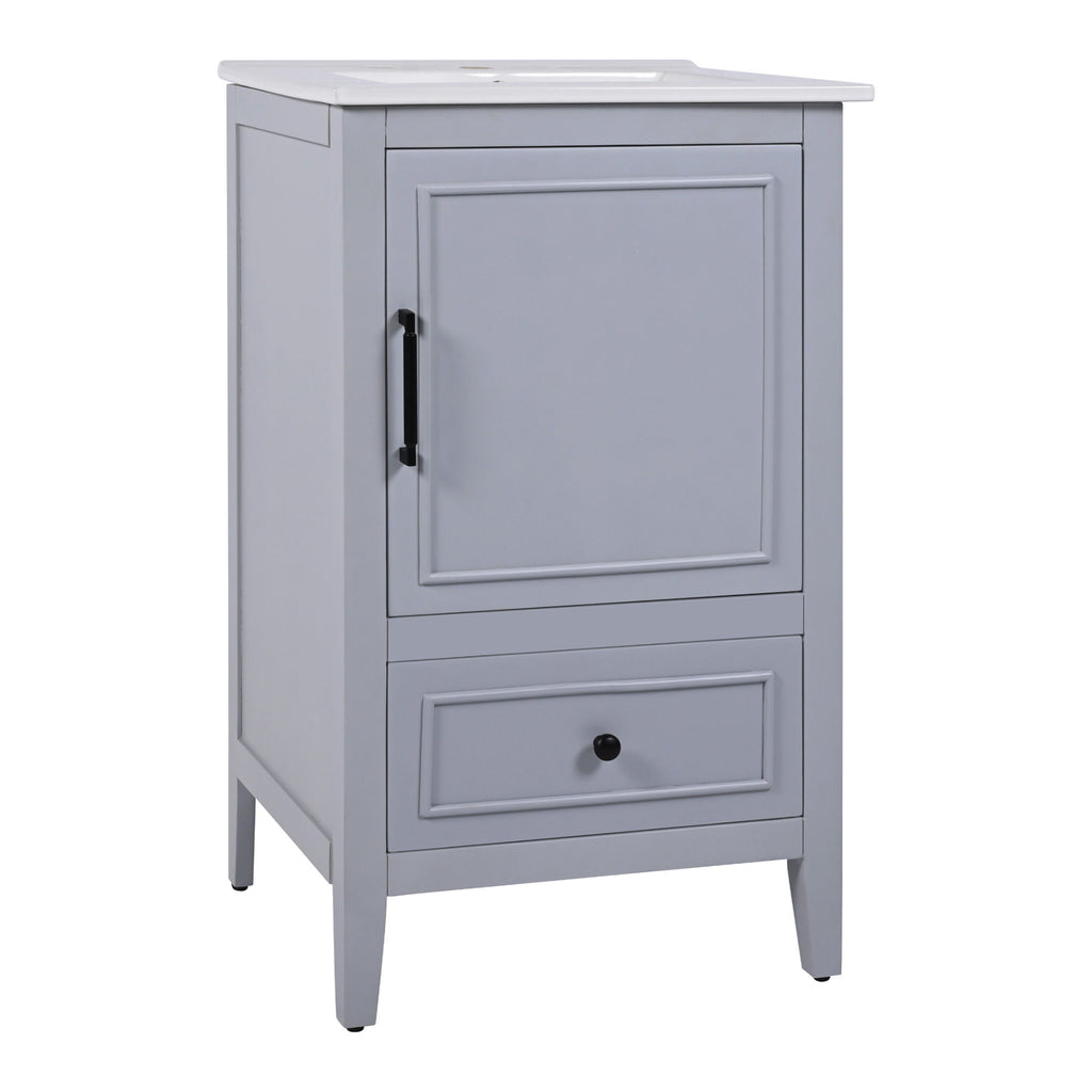 20" Bathroom Vanity With Sink, Bathroom Cabinet With A Door, Door Shelf Storage And Adiustable Foot Pads, A Drawer - Gray