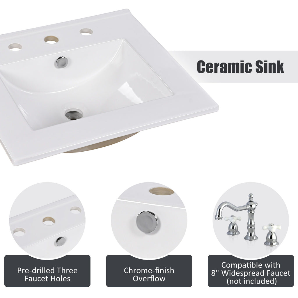 - Smooth Ceramic Sink: Our bathroom basin sink is made of solid ceramic with smooth and water-proof finish, which hardly leaves water stains. The pre-drilled three holes on the top is available to 8" faucet (not included). Besides, the overflow with metal c