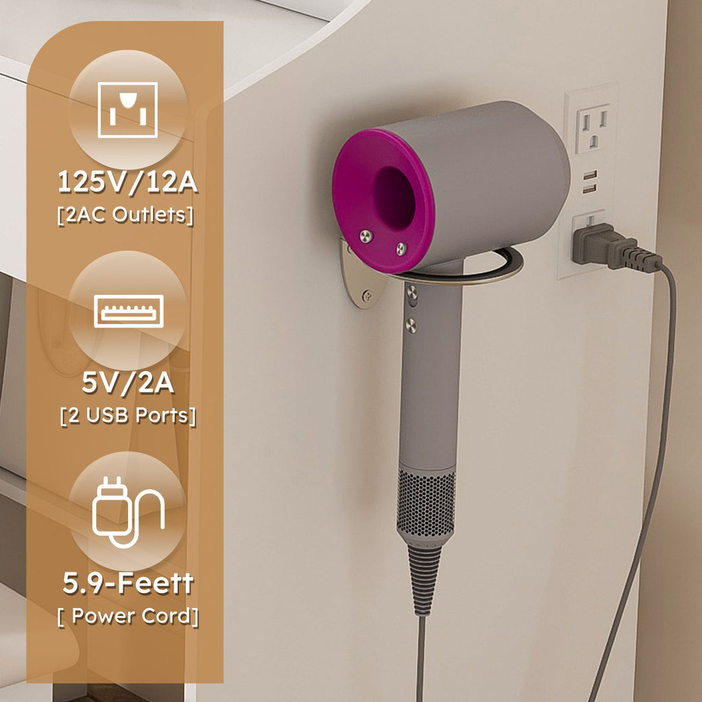 - Built-In Charging Station & Hair Dryer Holder: Integrated power outlets and USB ports allow device charging; a dedicated hair dryer holder keeps tools tidy and accessible.