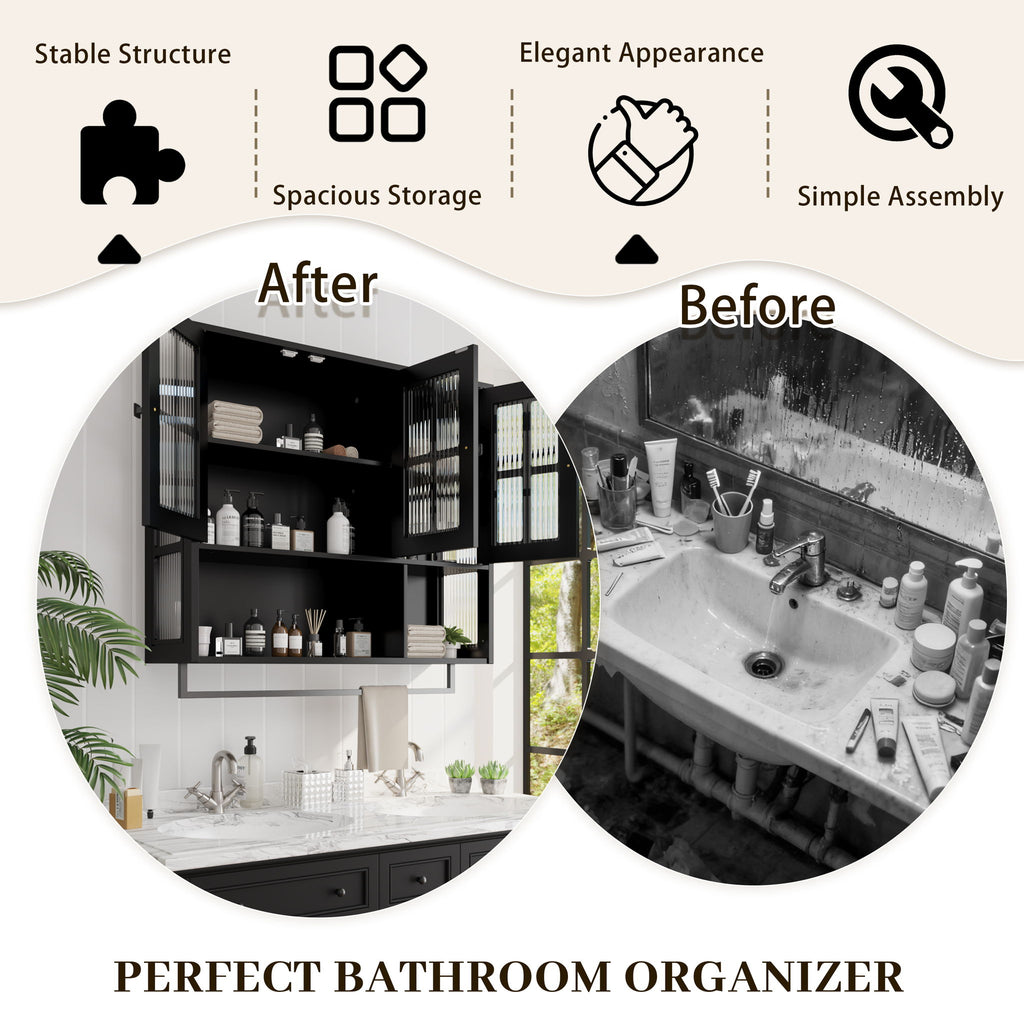 3 Door Wall Cabinet With Glass Door And Towel Bar - Black