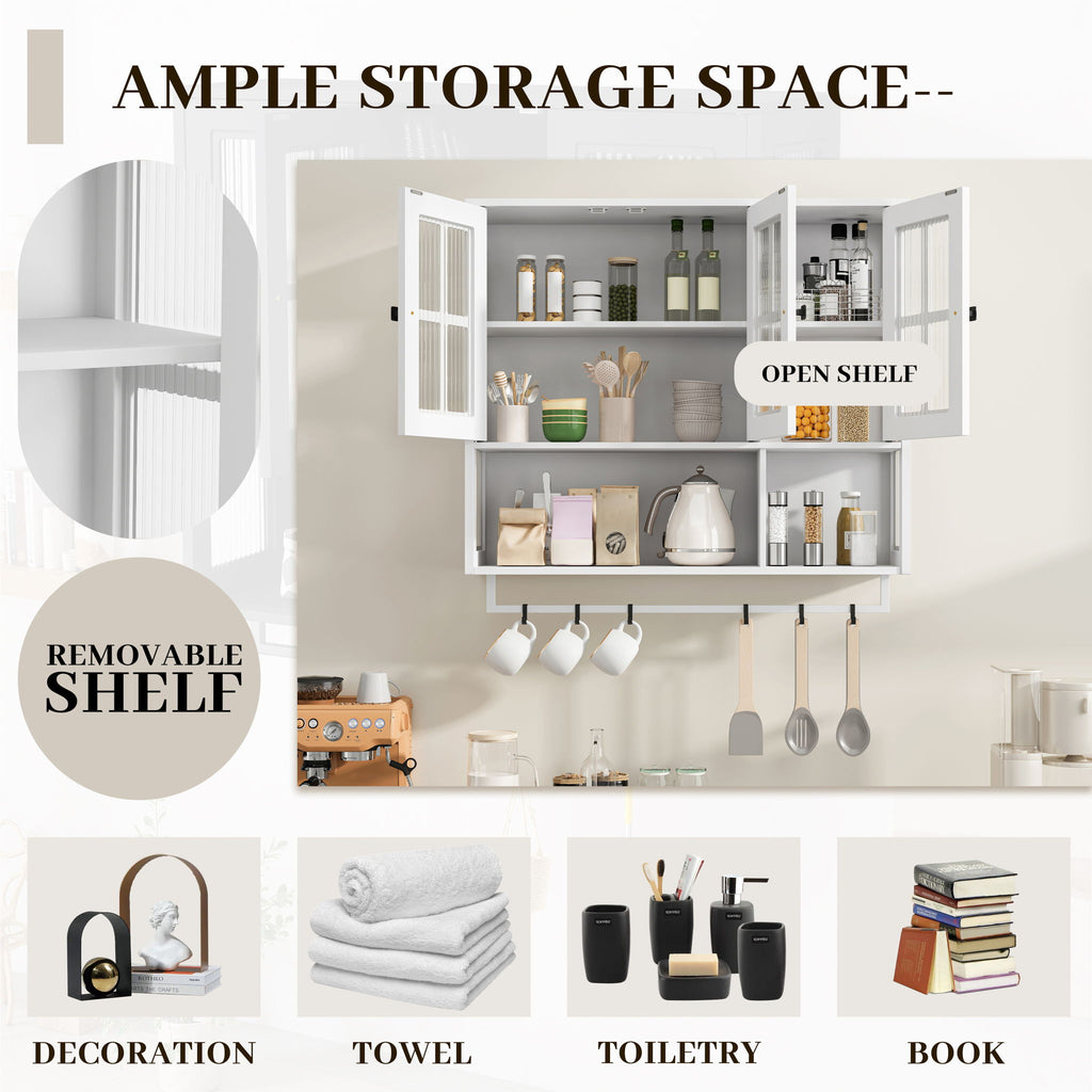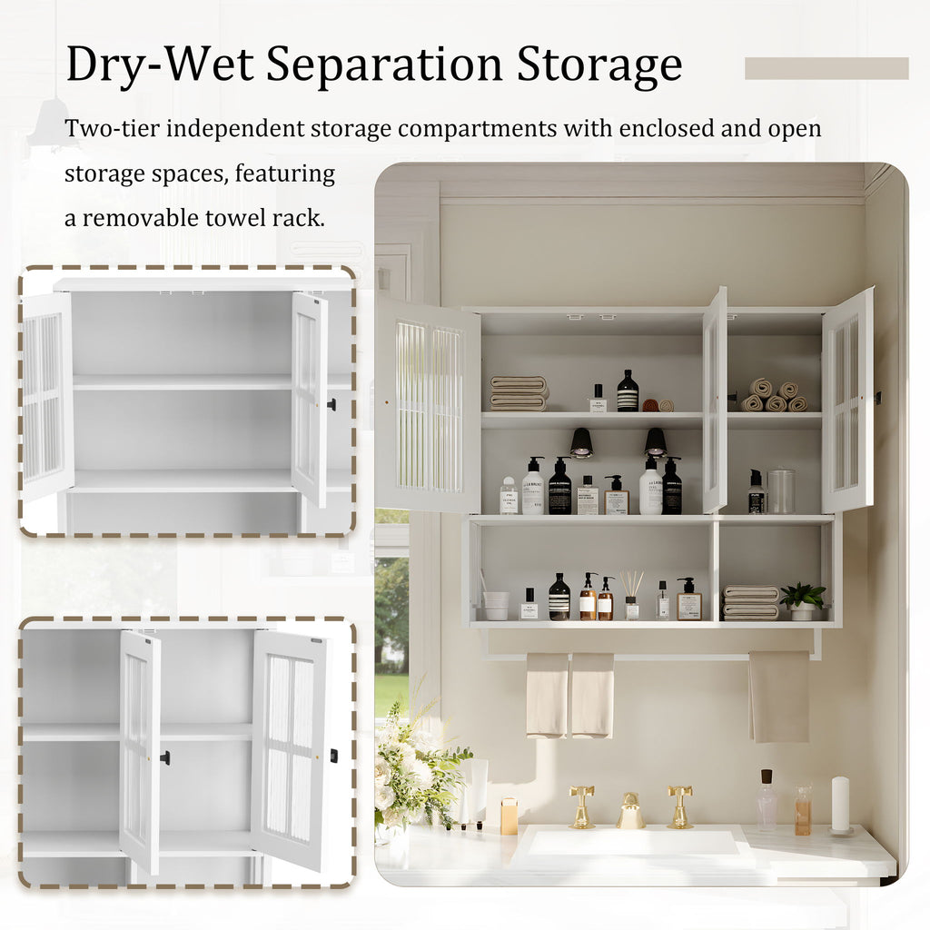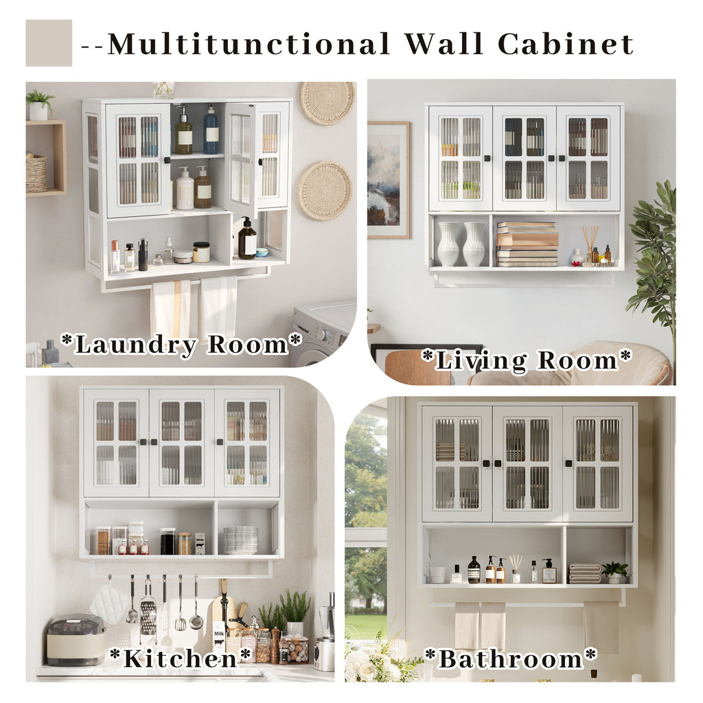 3 Door Wall Cabinet With Glass Door And Towel Bar - White