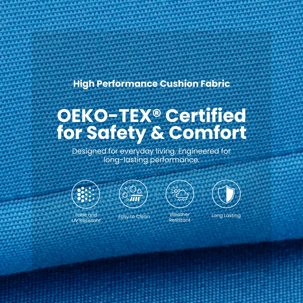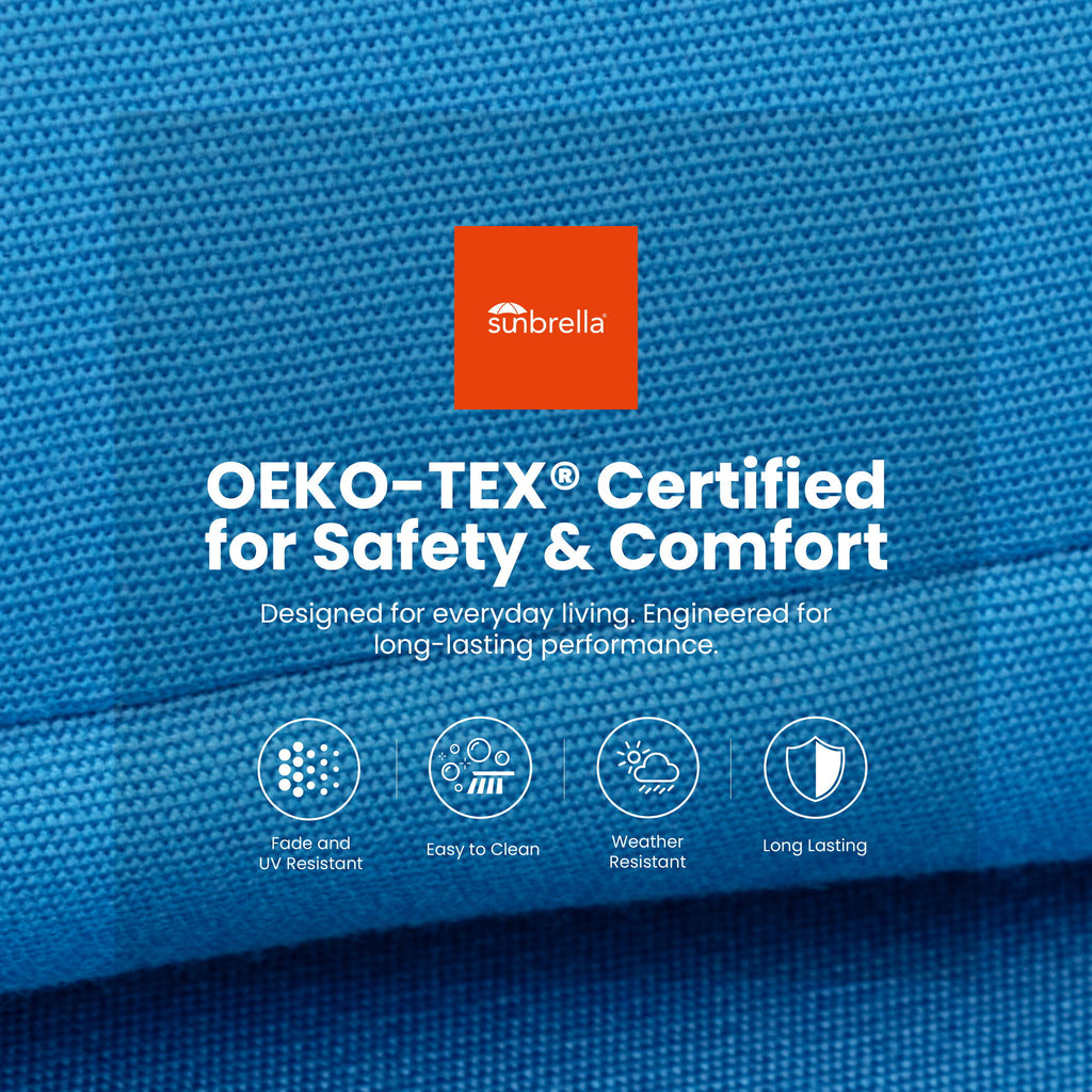 - Premium Sunbrella Cushions: Cushions are upholstered in high-performance Sunbrella fabric - fade-resistant, stain-resistant, and easy to clean for all-weather comfort.