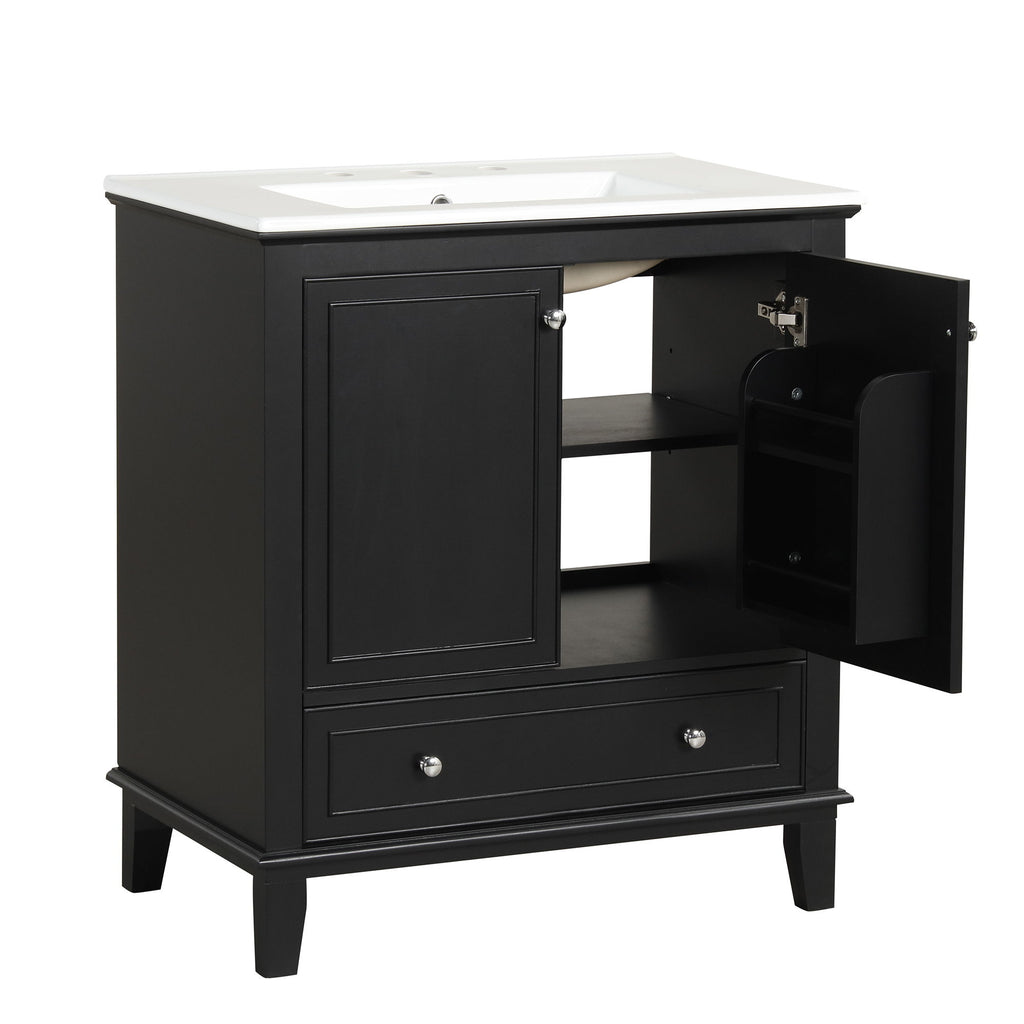 30" Bathroom Vanity With Sink Combo, Multi Functional Bathroom Cabinet With Doors And Drawer - Black