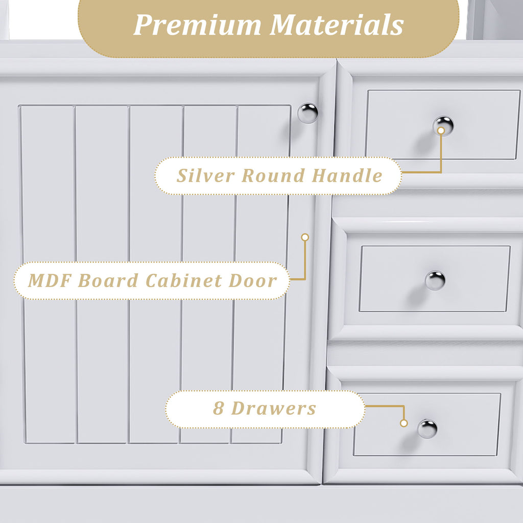 - Multi-functional storage: Includes one cabinet with door, one side drawer, two additional drawers, and an open lower shelf for organized space management.