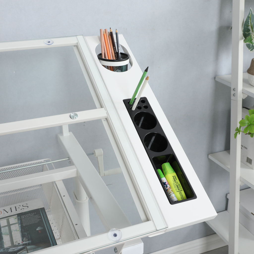 - Tiltable Tempered Glass Desktop: 5mm thick glass top tilts up to 75 for versatility.