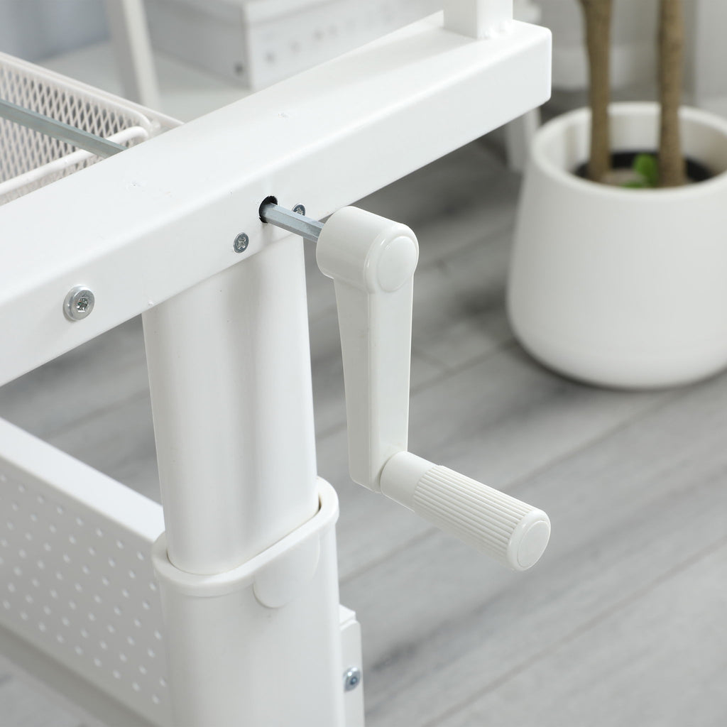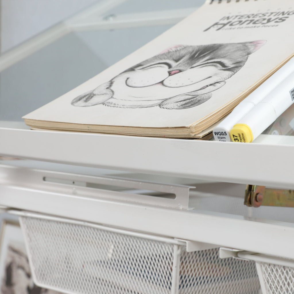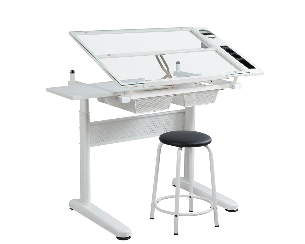38.18" Hand Crank Adjustable Drafting Table Drawing Desk With 2 Metal Drawers With Stool - White