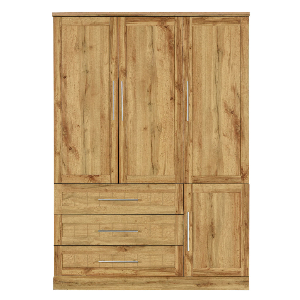 4 Door Wardrobe Armoire With 3 Drawers - Natural