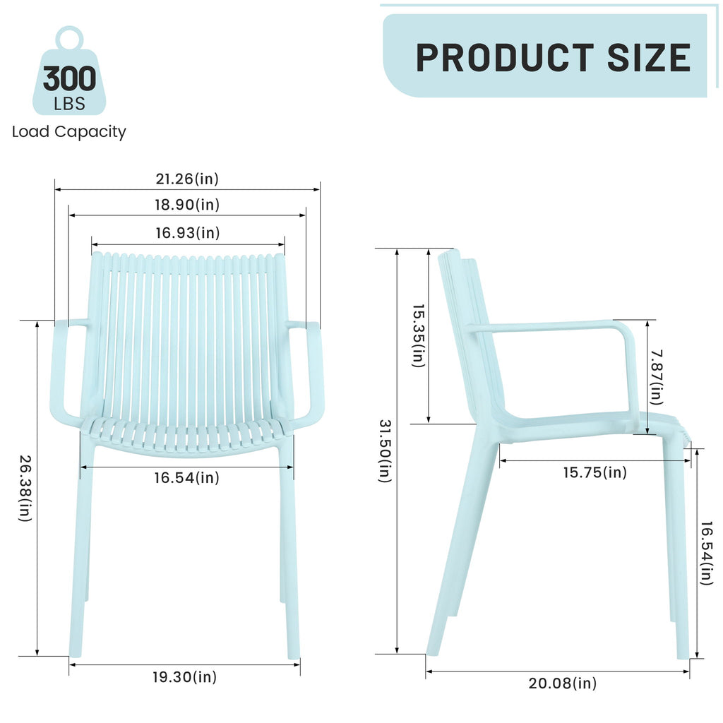 • All-Weather Durability: Chair & tabletop: high-quality polypropylene (waterproof, UV-resistant for over 17,520hrs outdoor use, mildew-resistant). Powder-coated metal legs: resist wind, rain, humidity.