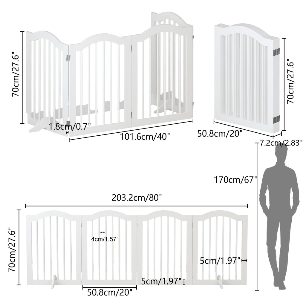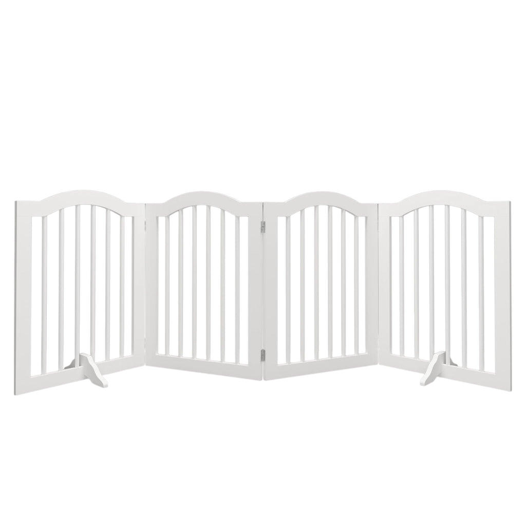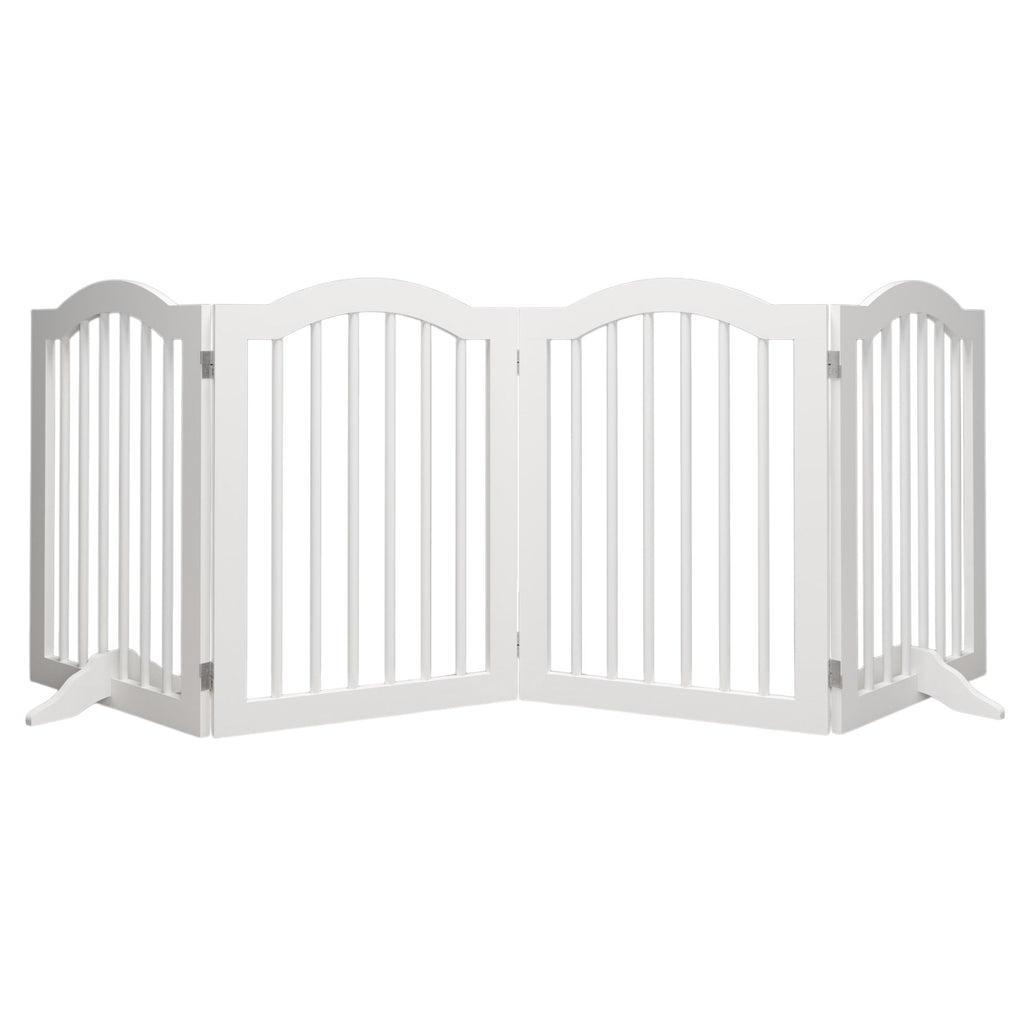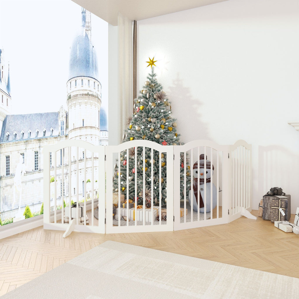 4 Panel Freestanding Pet Gate With Foldable Design And Support Feet - White
