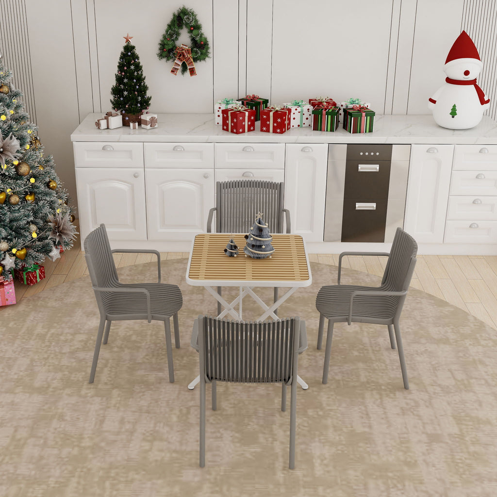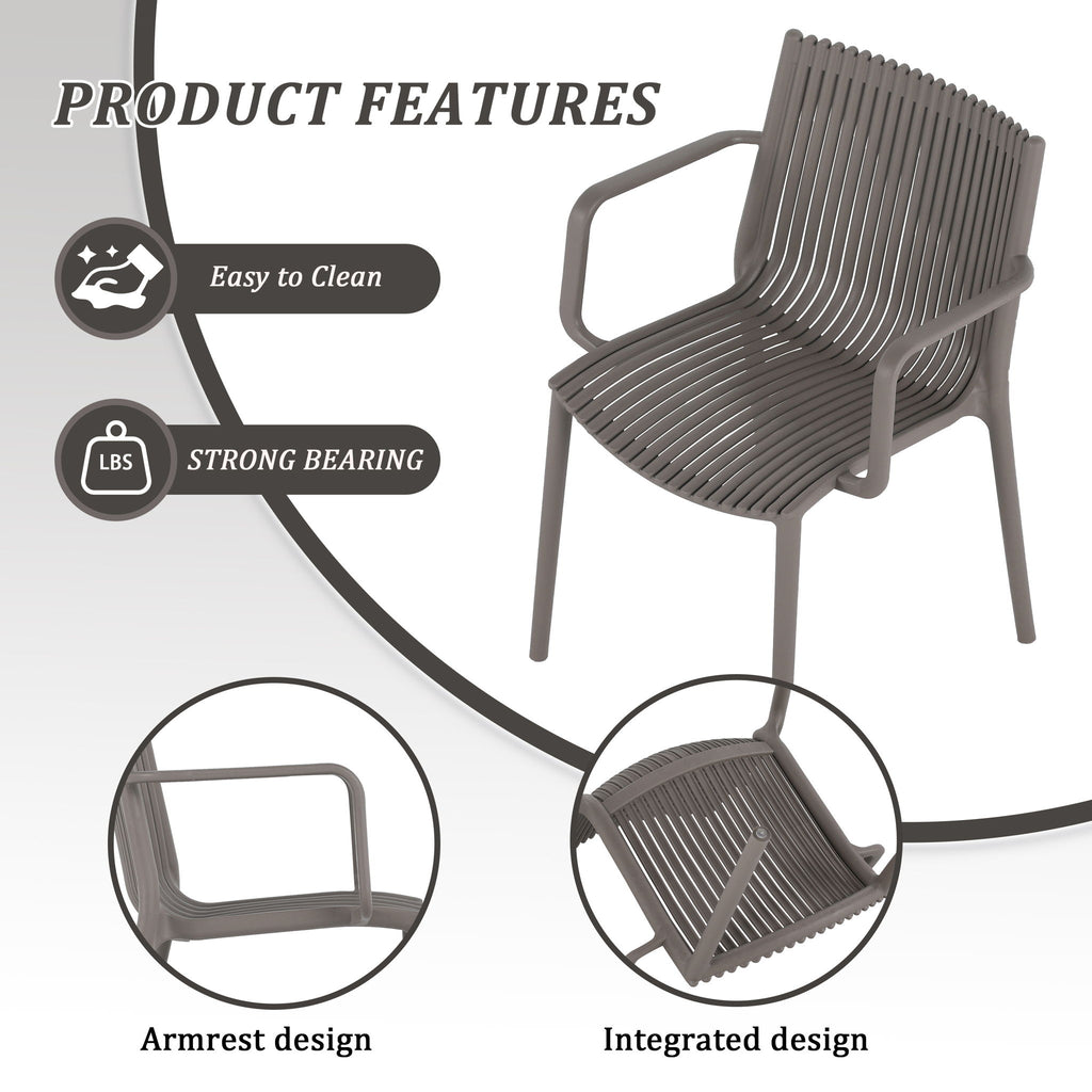 4 Piece Stackable Single Chairs With Vertical Stripe Design For All Weather - Warm Gray