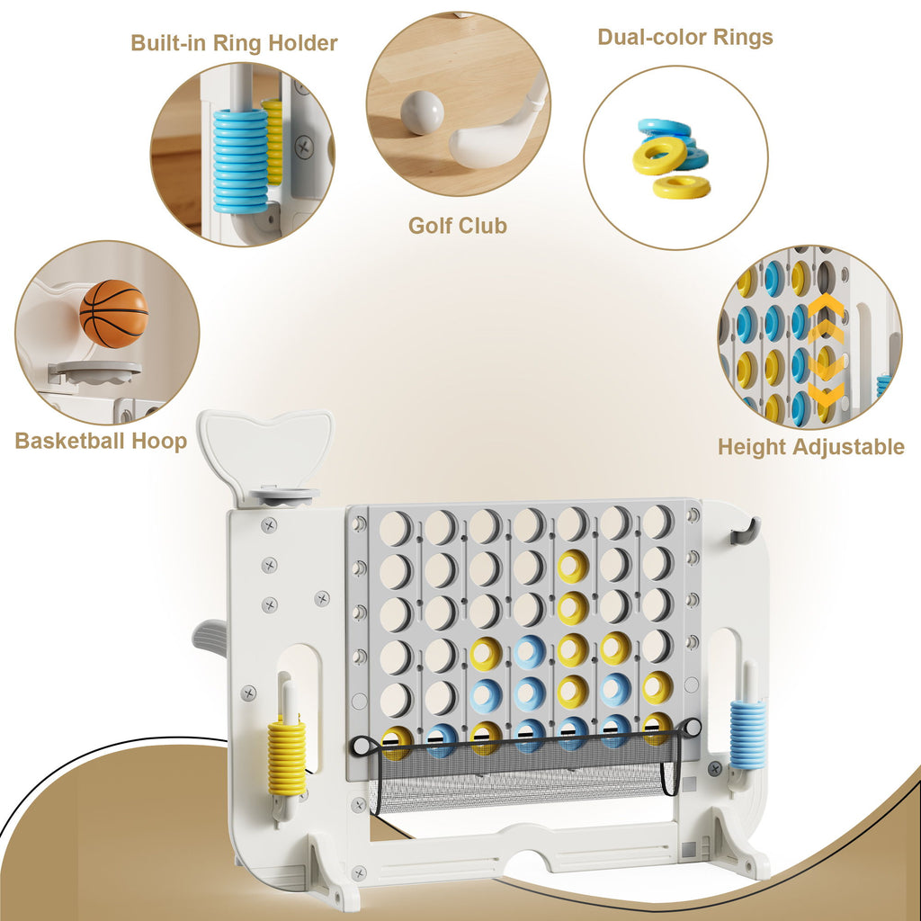 - 4-in-1 Multi-Game Fun: Combines Connect 4, basketball hoop, ring toss, and putting green for endless entertainment.