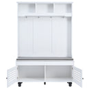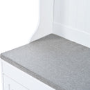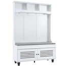 5 In 1 Entryway Bench With Shutter - Shaped Doors, Coat Rack, Cushion And 4 Sturdy Hooks, Wide Hall Tree With Storage Bench For Hallway, Entryway, Living Room - White