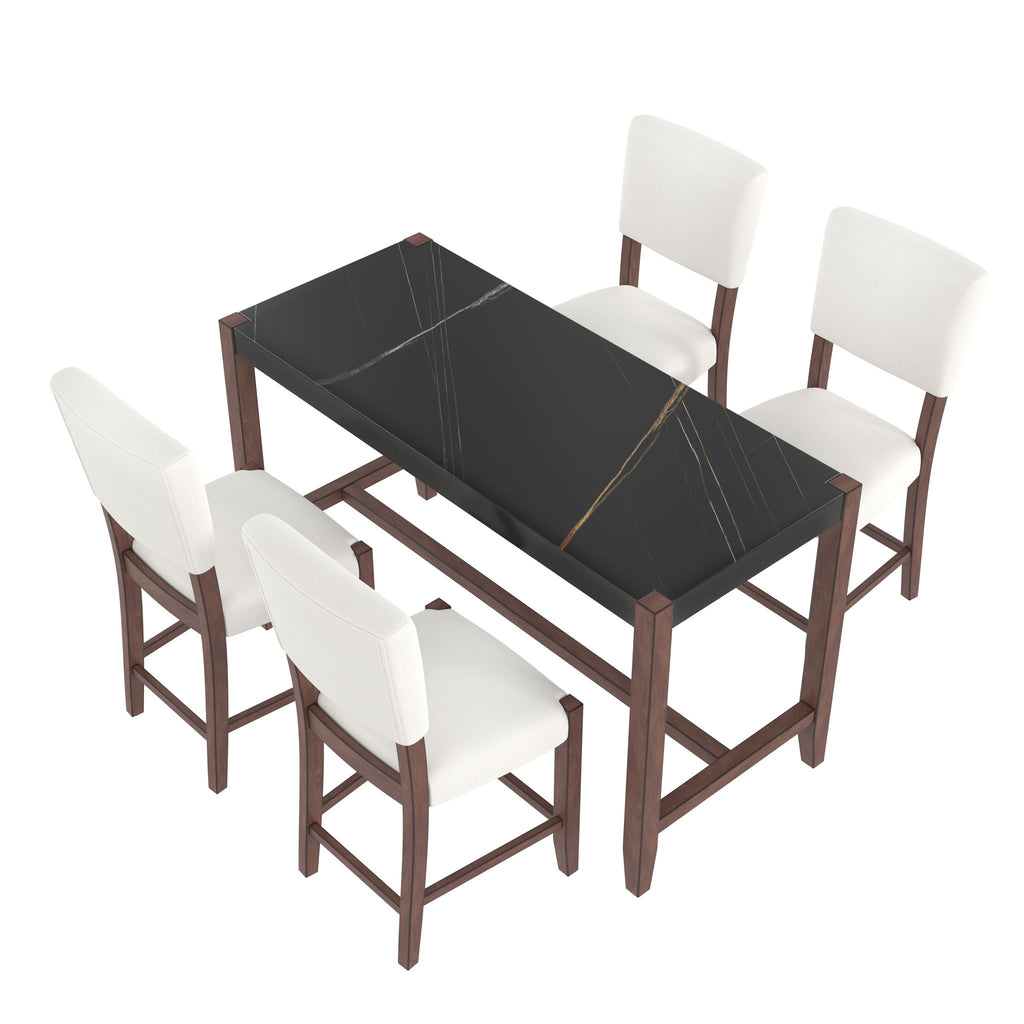 5 Piece Counter Height Dining Set, Bar Table With 4 Upholstered Chairs
