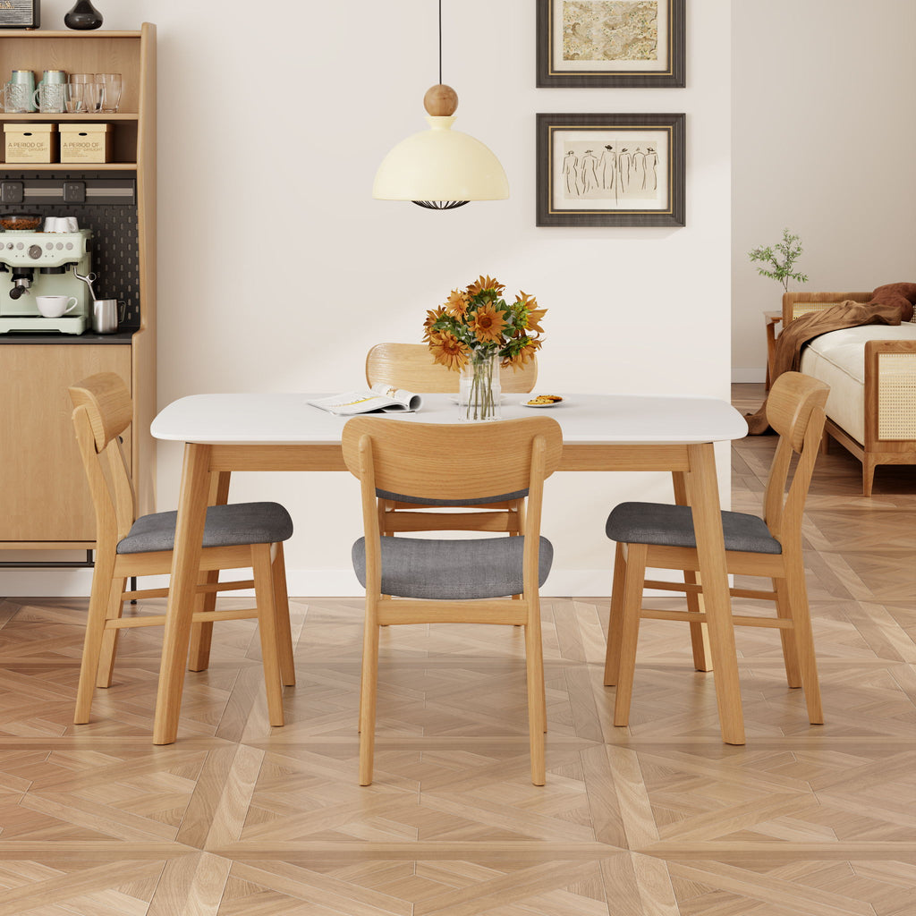 - 5-Piece Dining Set: Includes one solid wood frame table and four upholstered chairs for comfortable, spacious dining