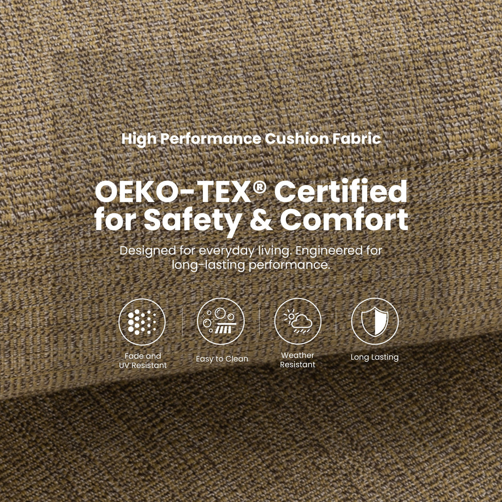 - Sunbrella Fabric Cushion: Upholstered in fade-resistant, stain-resistant fabric for outdoor durability and easy cleaning.