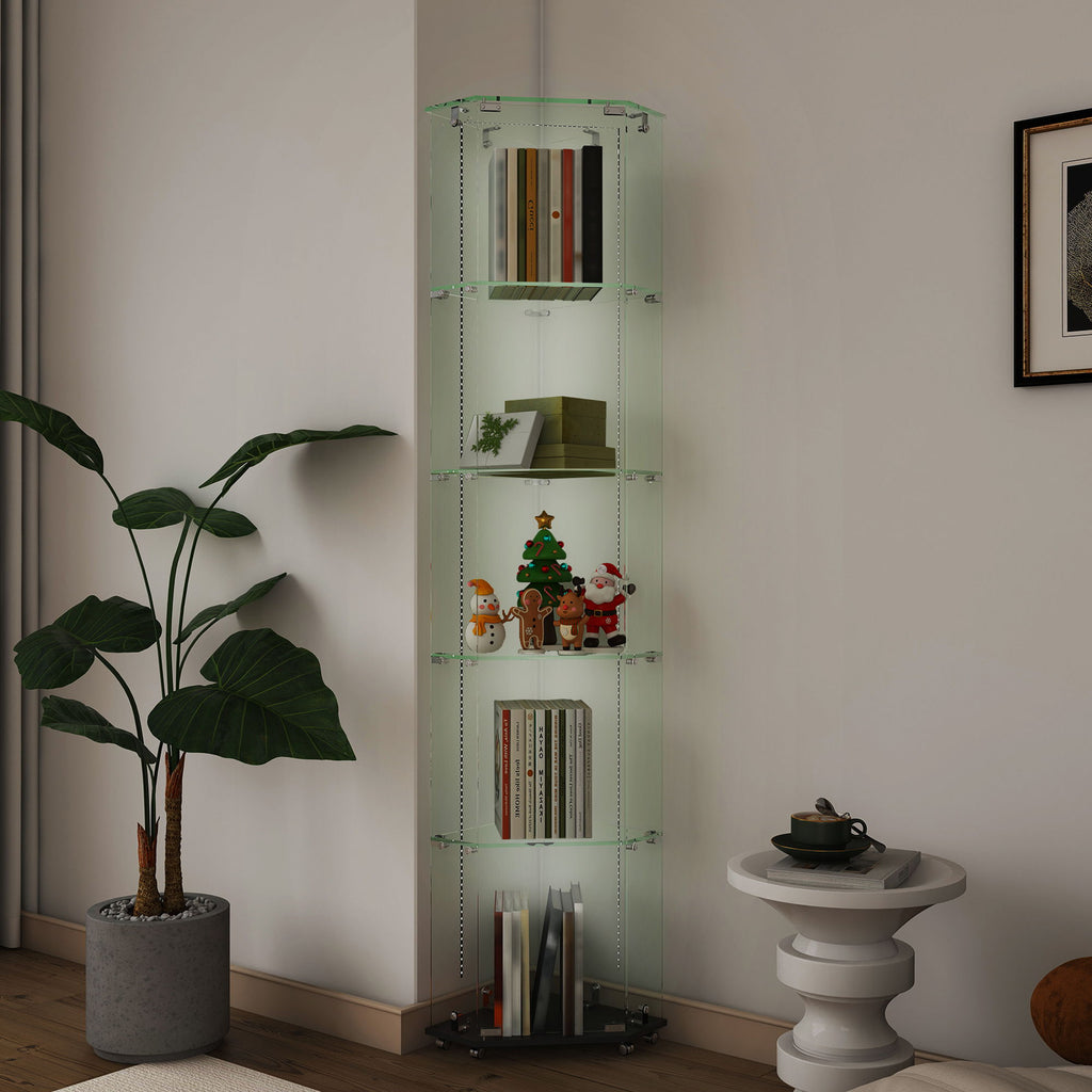 5 Tier Diamond Glass Display Case With 5 Dynamic LED Modes - Black