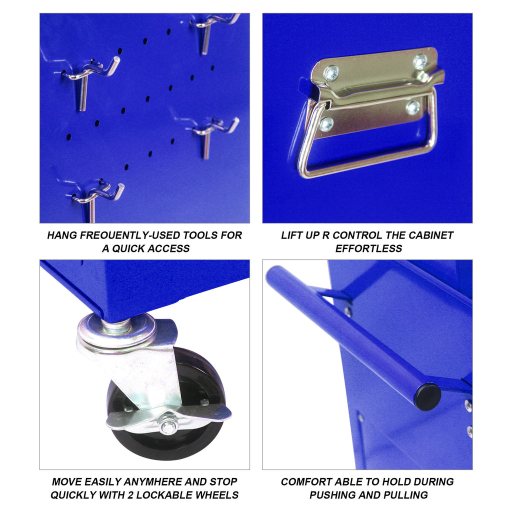 - Secure Locking System: The tool cabinet locks only when the top toolbox lid is opened; drawers must be fully closed before locking for maximum security.