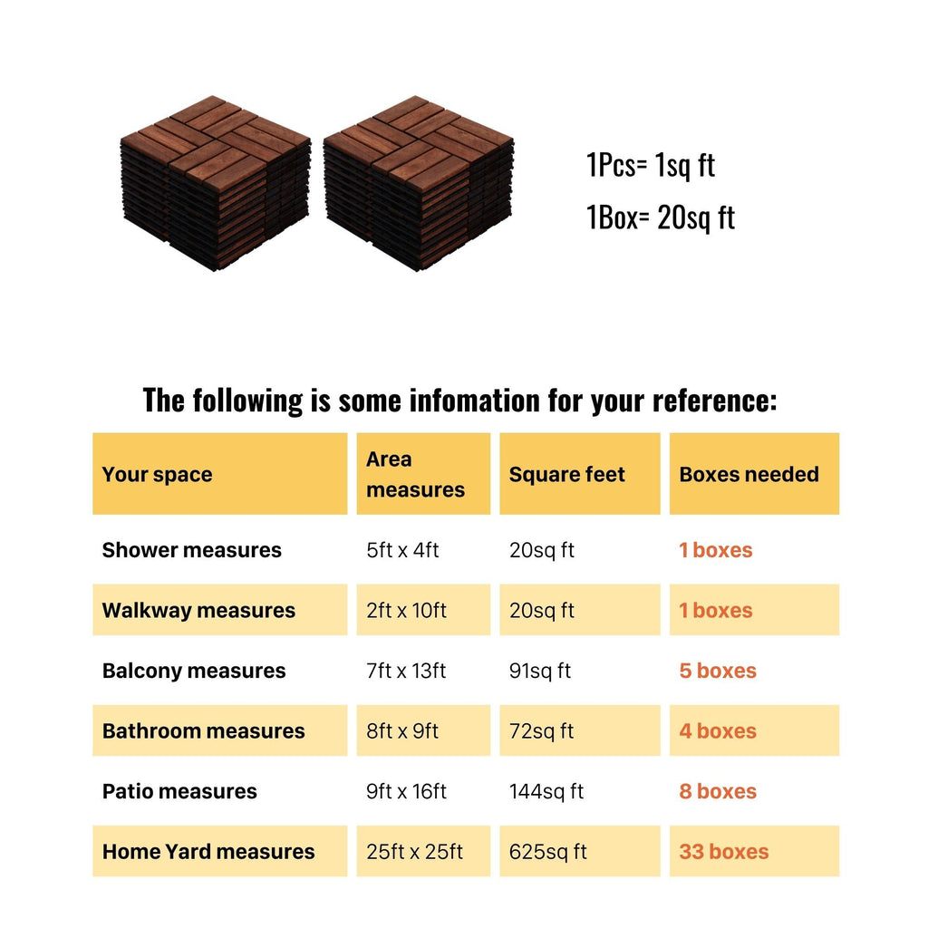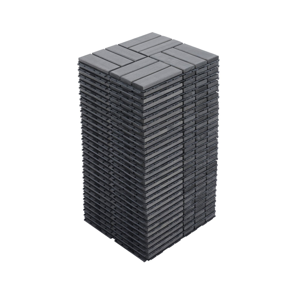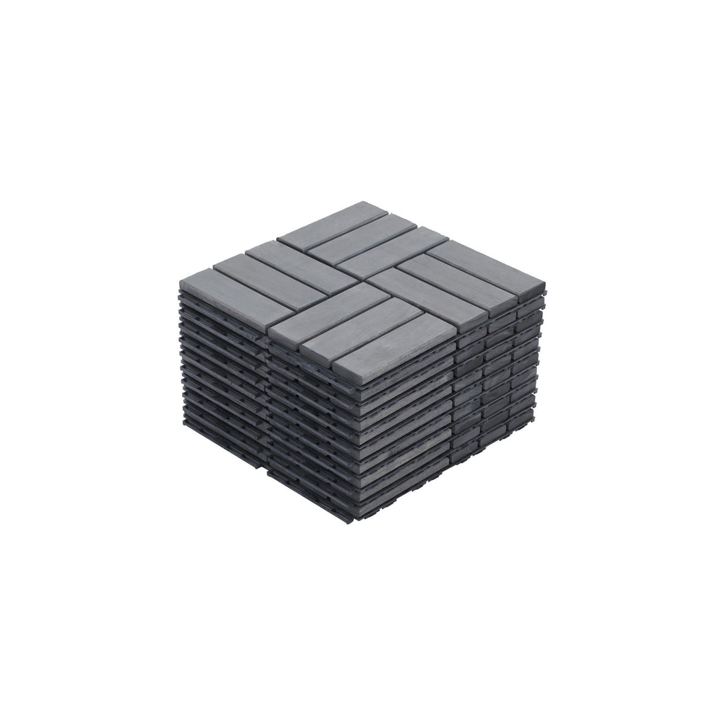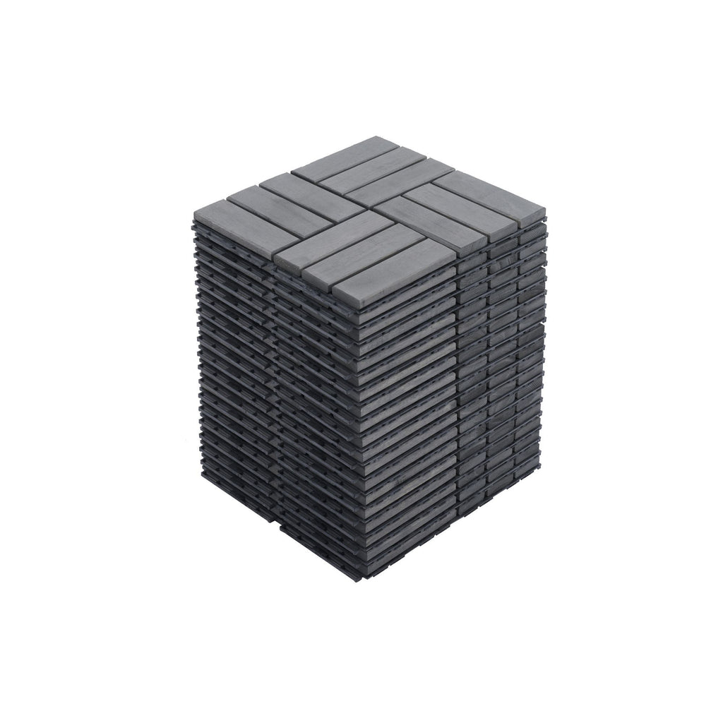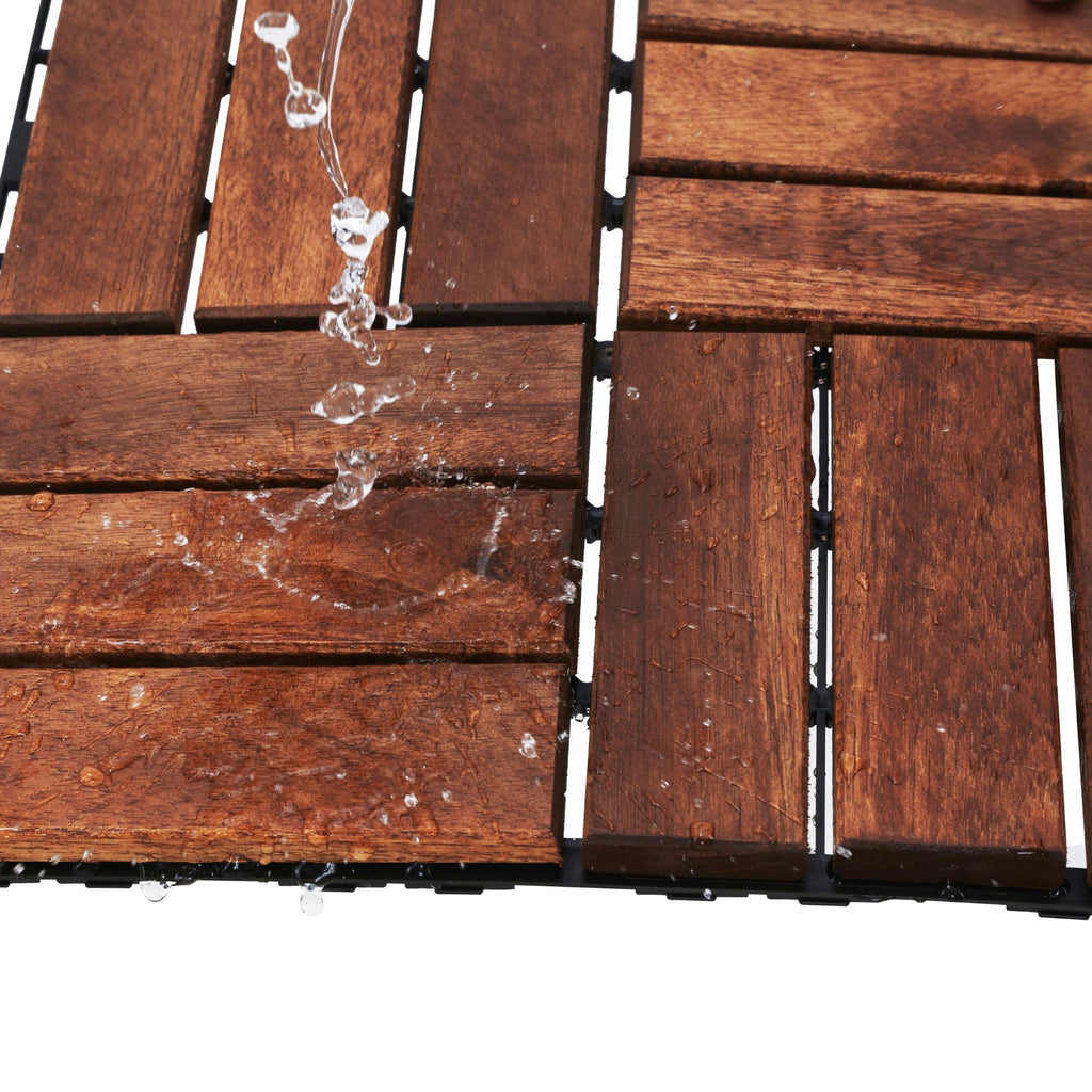 Acacia Wood Interlocking Deck Tiles Checker Pattern Square Acacia Hardwood For Outdoor Use, 30 Pieces - Dark Brown