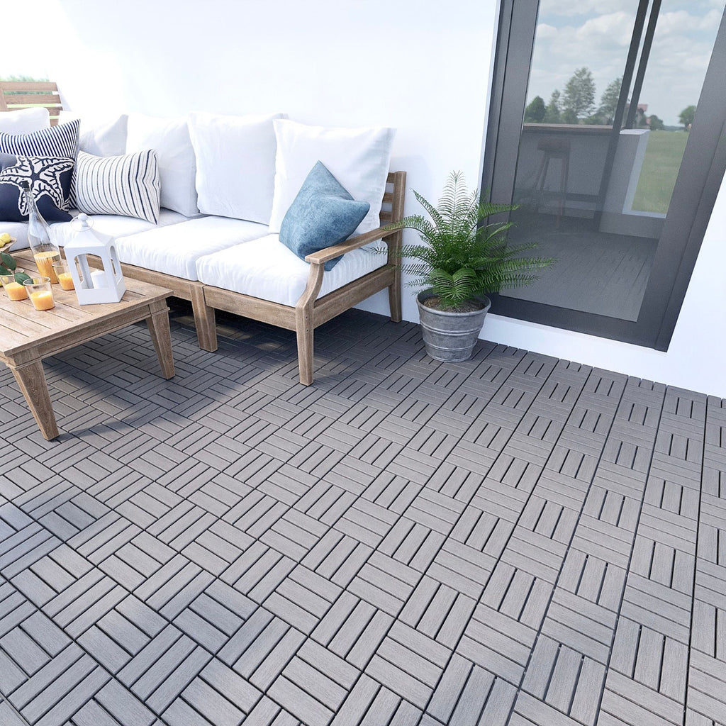 Light Interlocking Deck Tiles 30 Pieces Checker Pattern Outdoor Flooring For Patio Balcony Pool Side - Light Gray