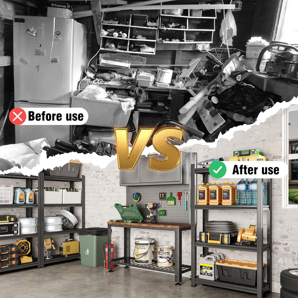 - [Multi Functional Storage] The metal storage rack provides a convenient storage method, with an open design for easy access to tools and supplies.