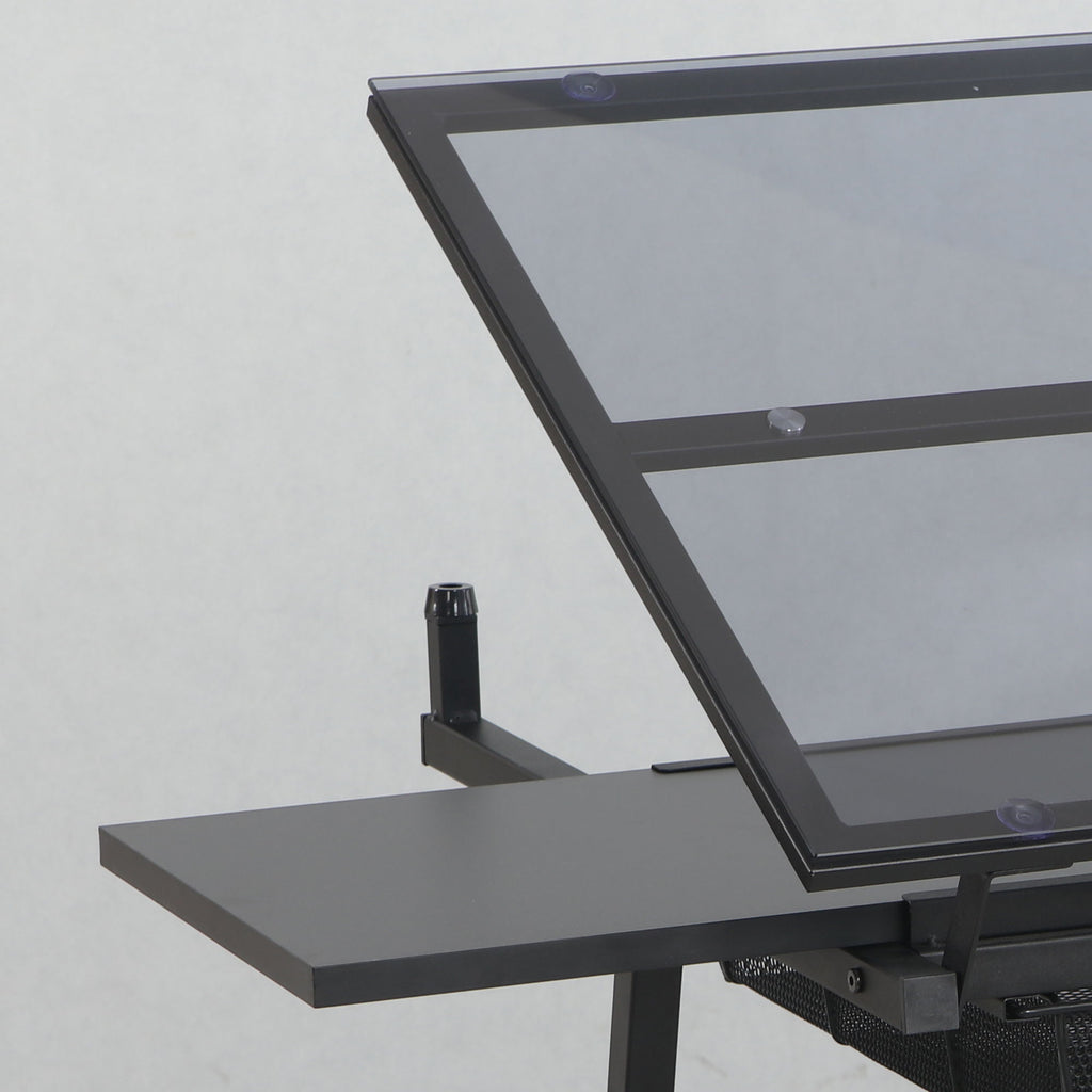 Adjustable Tempered Glass Drafting Printing Table With Chair - Black