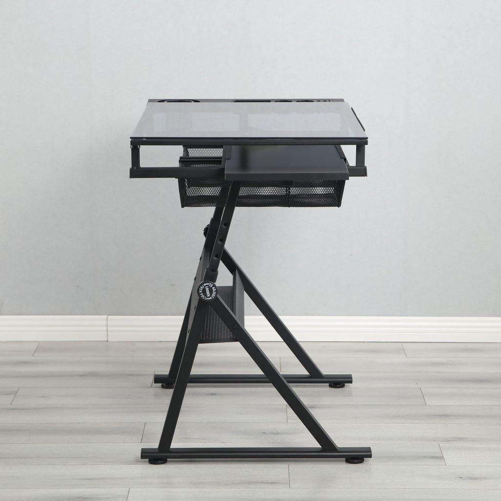 - Adjustable Tilted Glass Desktop: 5mm tempered glass top can be tilted from 0 to 75 for convenience.