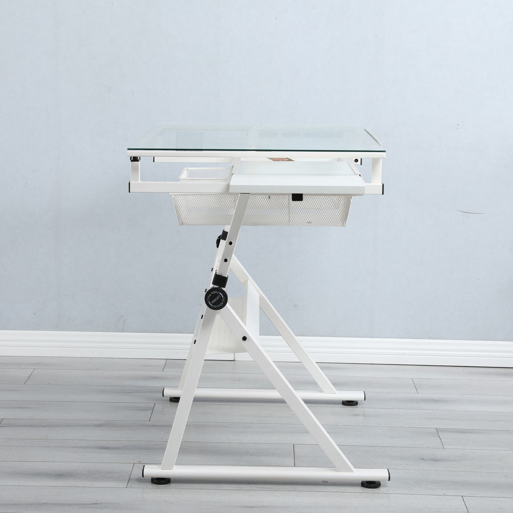 Adjustable Tempered Glass Drafting Printing Table With Chair - White