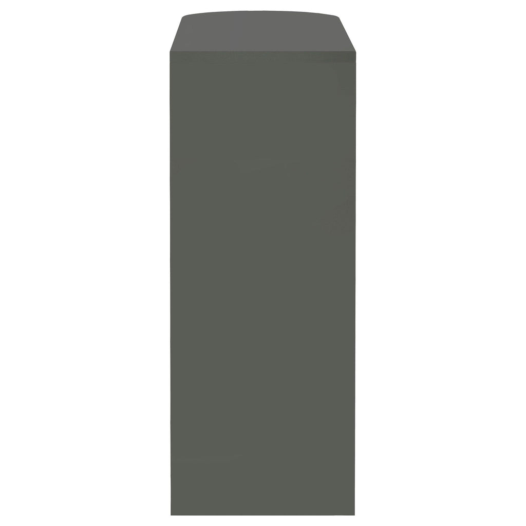 Add a fun retro feel to a modern living area with this contemporary bar table. In a glossy grey finish, the silhouette is cool and neutral. Tempered glass storage shelves offer a clean and open feel while displaying libation bottles in style. Included guardrails help to secure items. Shiny metallic graces the support pole and tapered legs, creating a mid-century modern-inspired look.