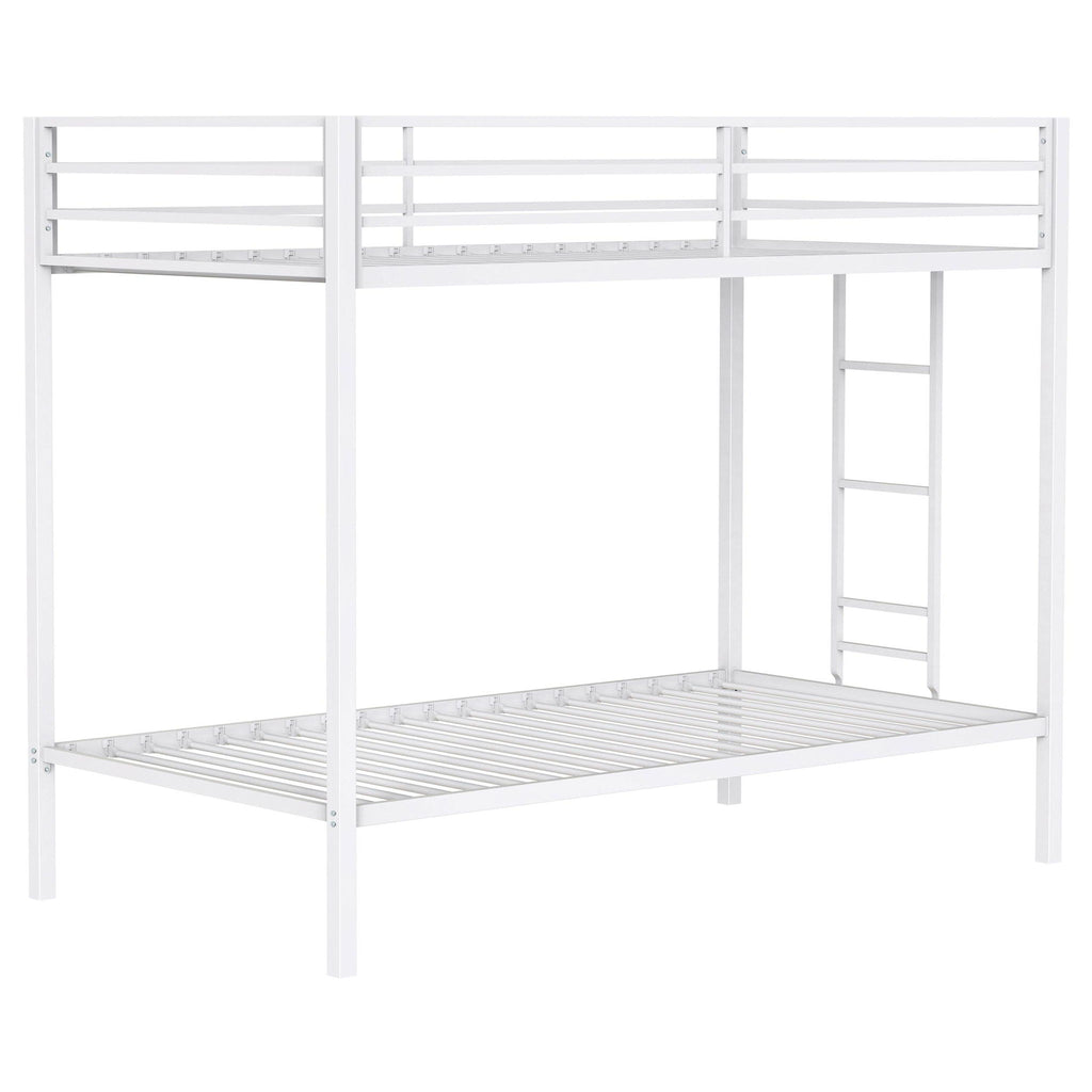 Built for flexibility and durability, this modern metal bunk bed blends clean lines with a space-saving design. A secured upper guardrail and integrated ladder support safe sleeping arrangements for shared rooms or compact spaces. Crafted from steel, the frame delivers lasting strength and sleek utility. Perfect for maximizing sleeping capacity in kids’ bedrooms, guest quarters, or multi-use rooms.