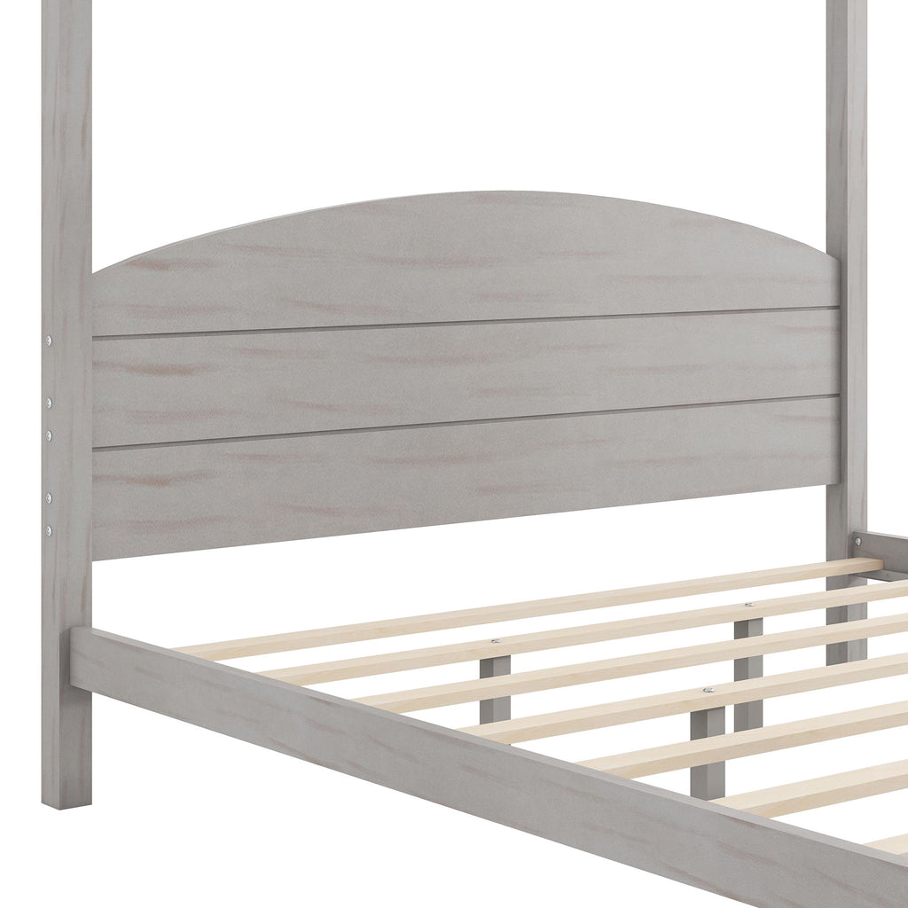 King Size Canopy Platform Bed With Headboard And Support Legs - Gray