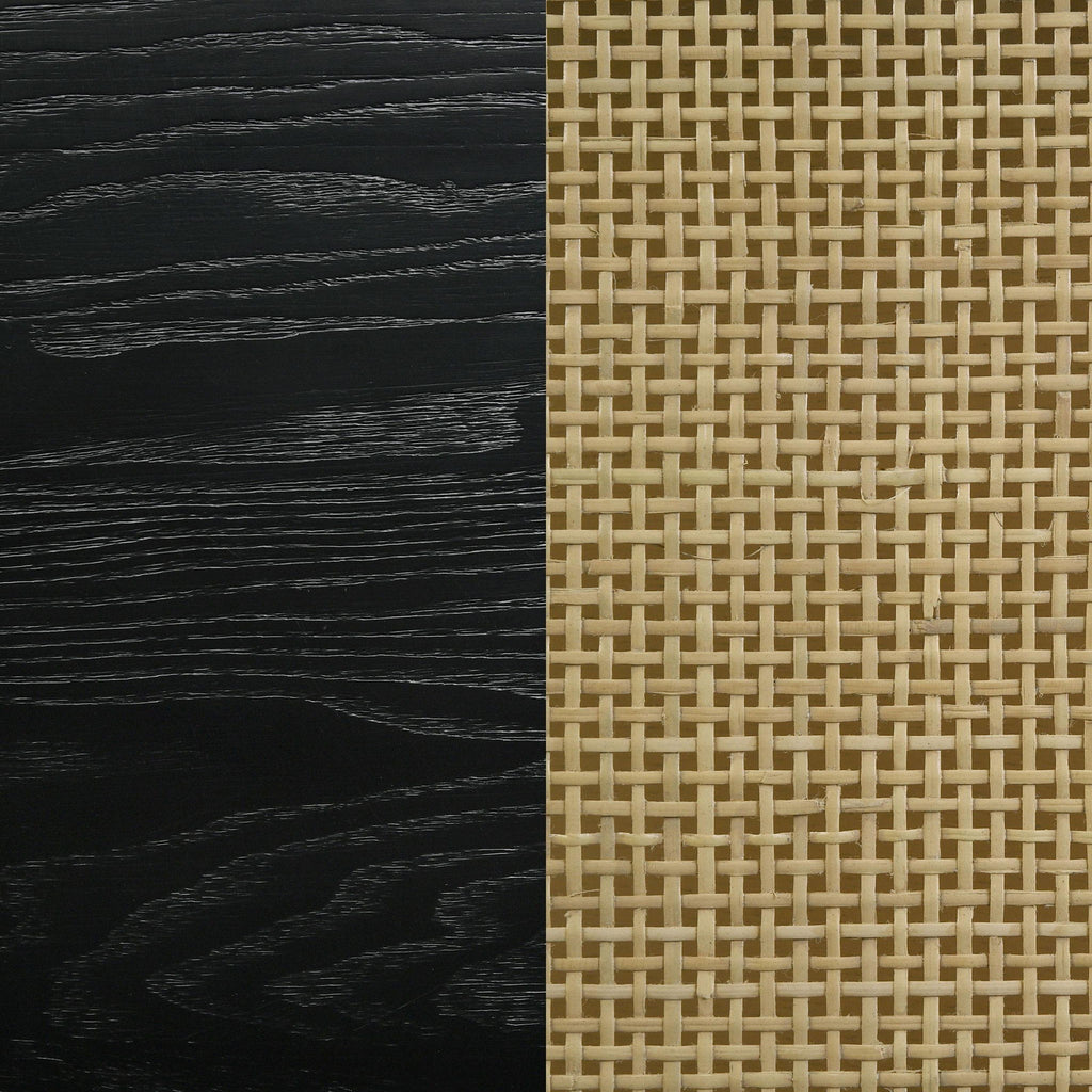 This 65-inch sideboard combines modern sophistication with organic charm and exceptional functionality. Featuring handcrafted woven cane door panels from Indonesia, it adds natural texture to any space. Constructed from solid rubberwood and white ash veneer, its refined craftsmanship is enhanced by a 17-step finishing process. Felt-lined drawers with English dovetail construction glide smoothly on 45mm metal ball-bearing tracks, while soft-close Euro-hinged doors and adjustable shelves offer practical storage. Antique brass knobs and legs complete the elegant design.