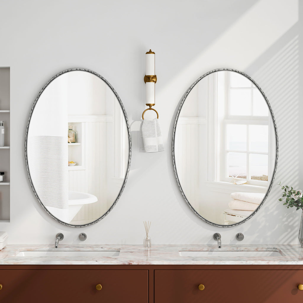 Art Oval Retro Mirror, Wall Hanging For Bathroom, Bedroom - Silver