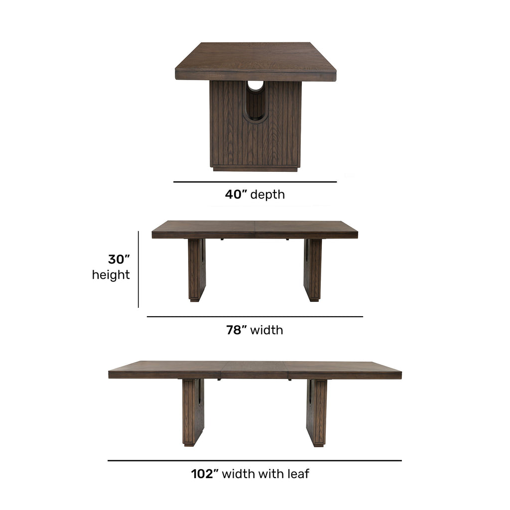 - Includes an 24” butterfly leaf that extends the table from 78” to 102” and self-stores into the table top