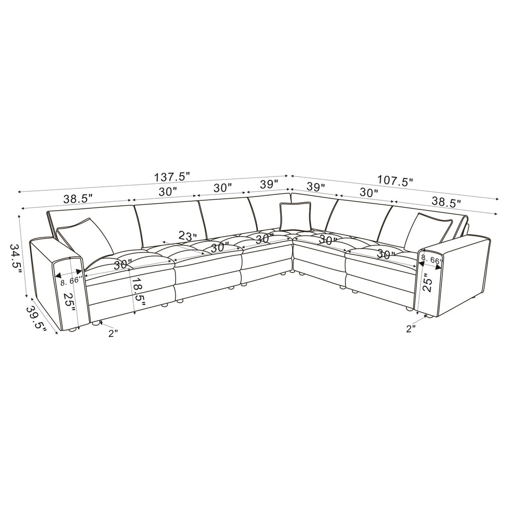 This retro-inspired modular sectional brings a blend of comfort and contemporary style to your living space. Featuring soft blue corduroy upholstery and a sophisticated grid-tufted design, it delivers both elegance and coziness. The fully encased solid and engineered wood frame ensures stability for heavy use, while sinuous spring seating and pocket coil springs provide exceptional support and durability.