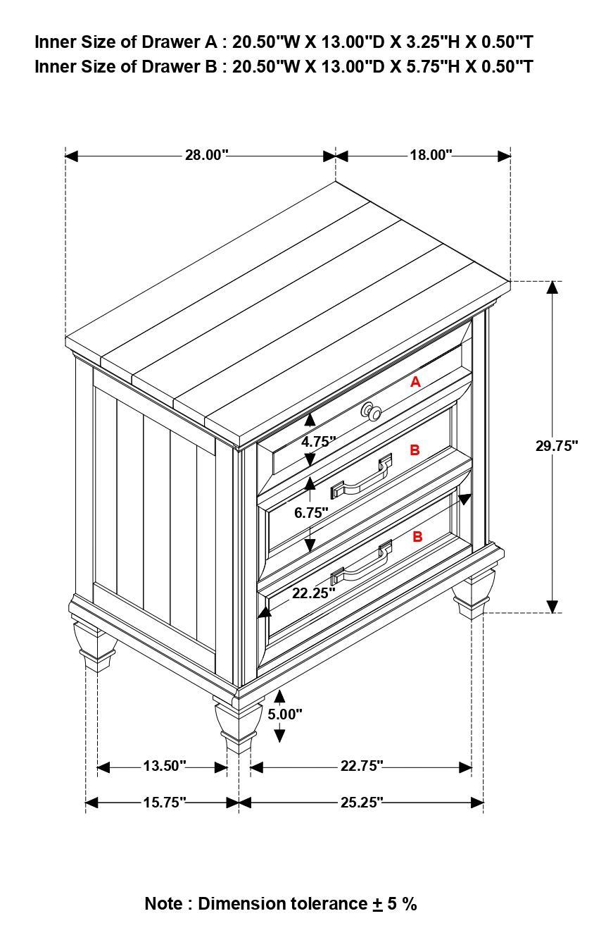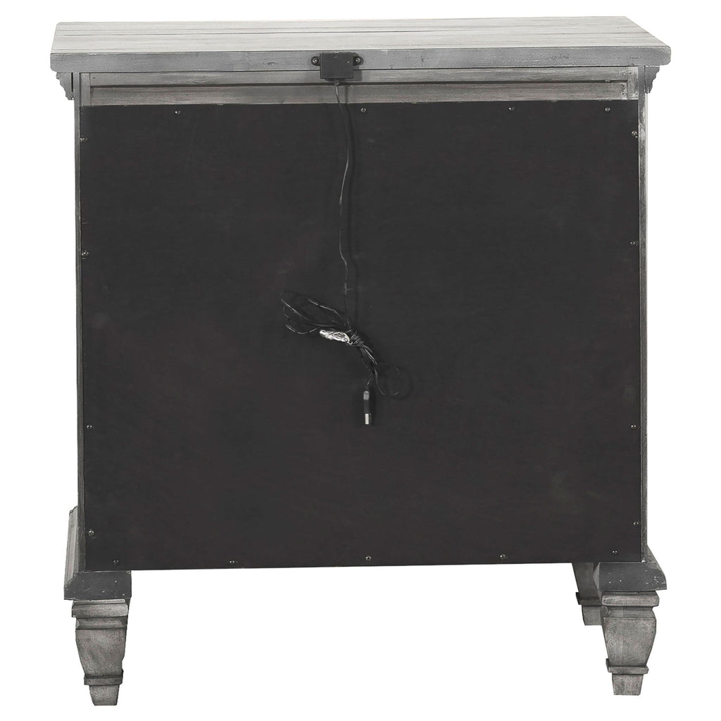 With a country flair and rustic elements, this charming traditional three-drawer nightstand offers classical design features such as crown molding, wood paneling, and a plank style design that gives your bedroom a farmhouse feel. A durable mahogany wood frame in a grey finish lends itself to your rustic styled bedroom with elegance and ease. Modernized for today, this three-drawer grey nightstand also features two cedar-lined bottom drawers, a black felt-lined top drawer, and a built-in USB charging port to add the finishing touches.