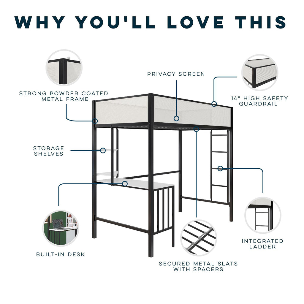 Axel - Twin Loft Bed With Desk & Shelves - Black