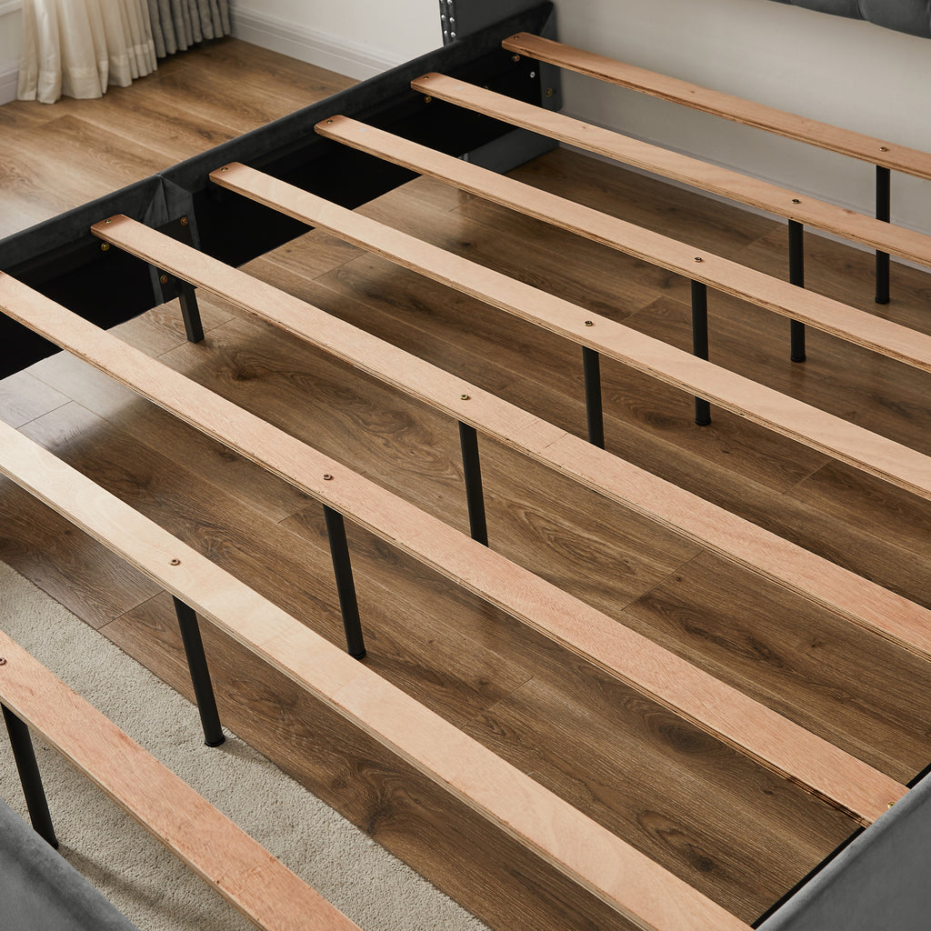 B100S King bed, Button designed Headboard,strong wooden slats + metal legs with Electroplate