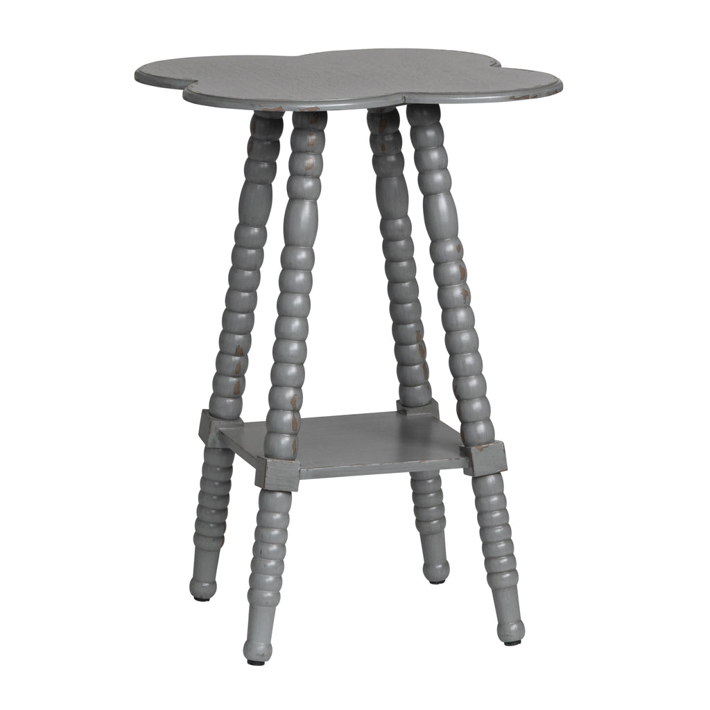 Even in a dark gray wood finish, this Crestview CollectionBar Harbor gray Clover Shaped Accent Table has a clover-shaped tabletop that will bring you luck and perhaps even a smile. It fits into any small space, with traditionally spindled legs and a lower shelf for display of things you love. Perhaps a framed photo, or a small potted plant? You choose how to make this piece really work for you and your space.