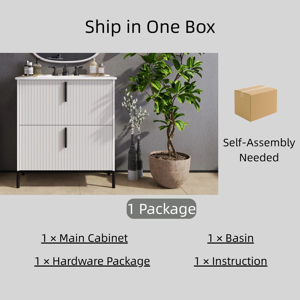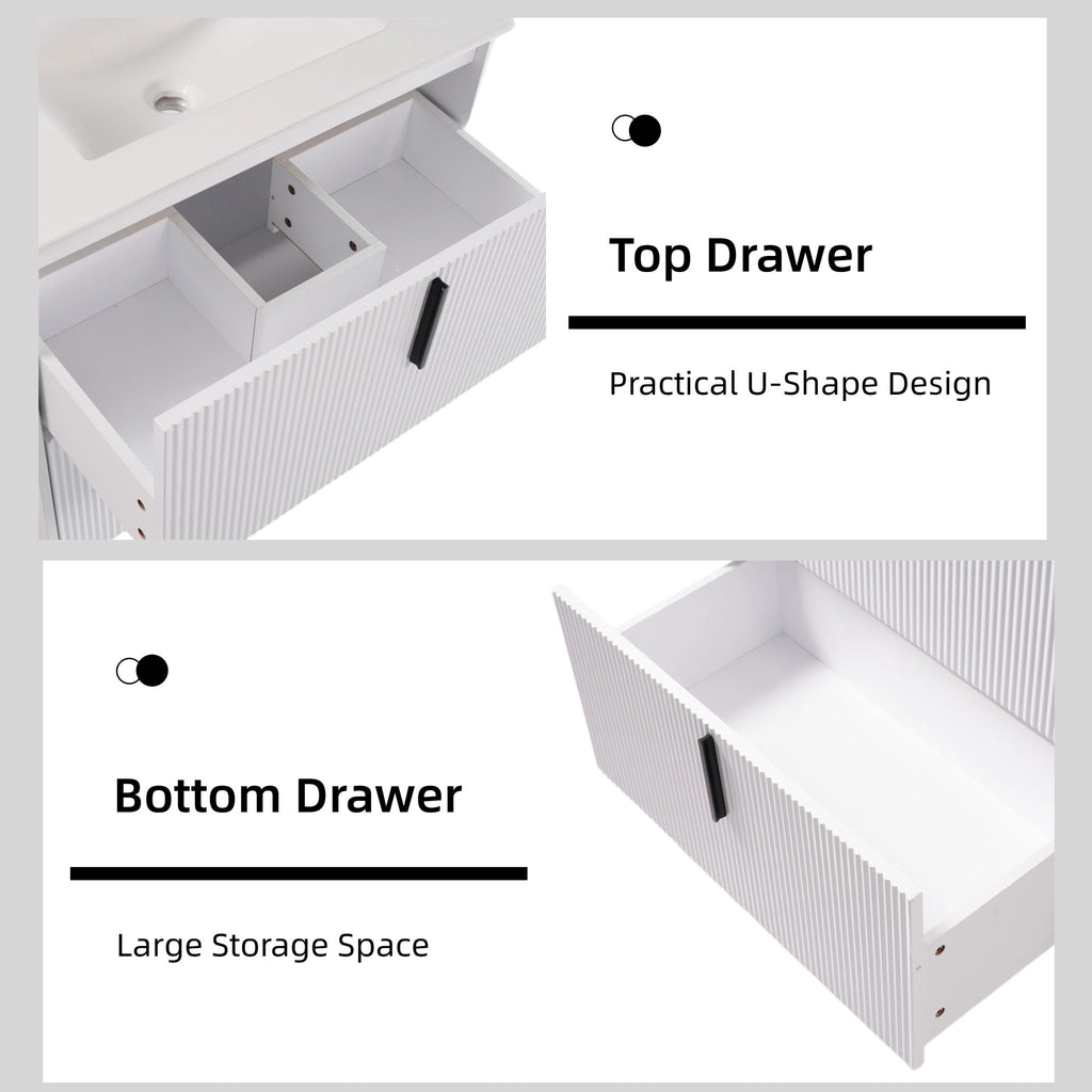 Fluted Bathroom Vanity & Sink, Full Extension Soft Close Drawers - White