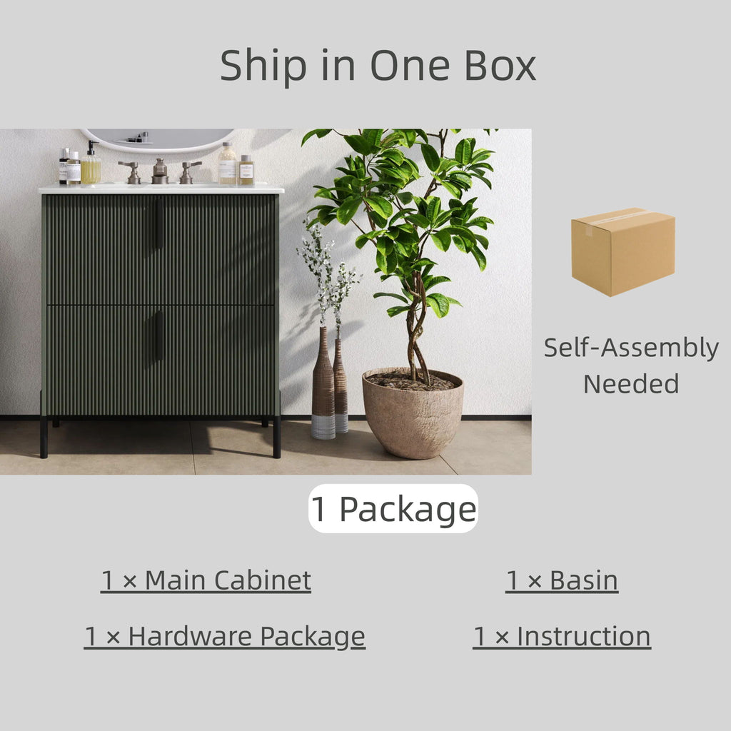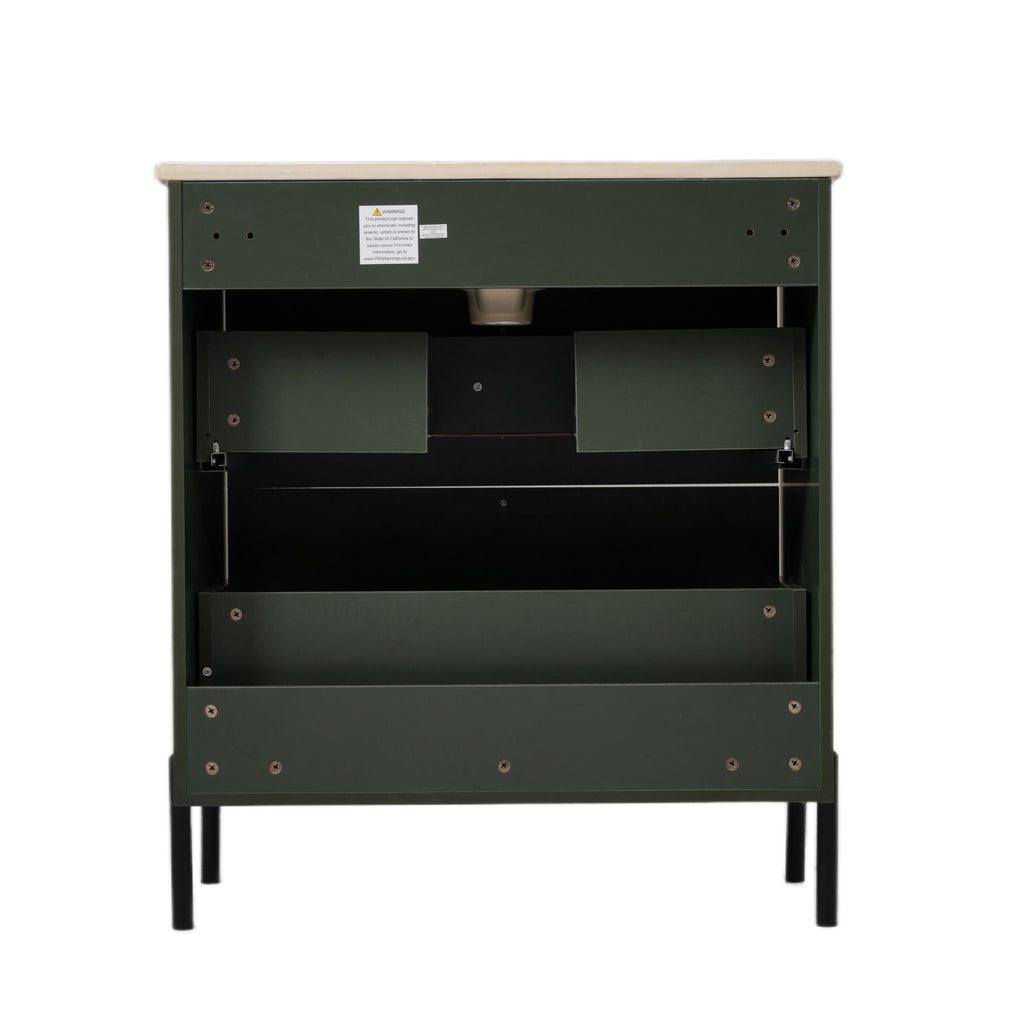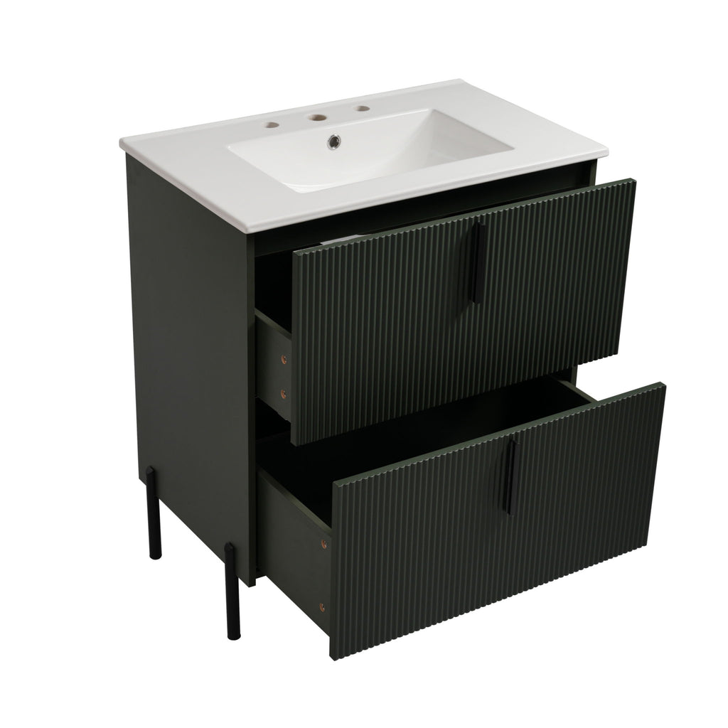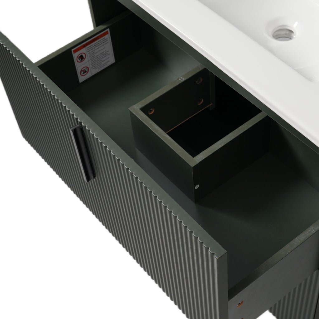 Fluted Bathroom Vanity With Sink, Full Extension Soft Close Drawers - Green