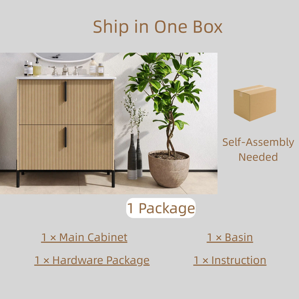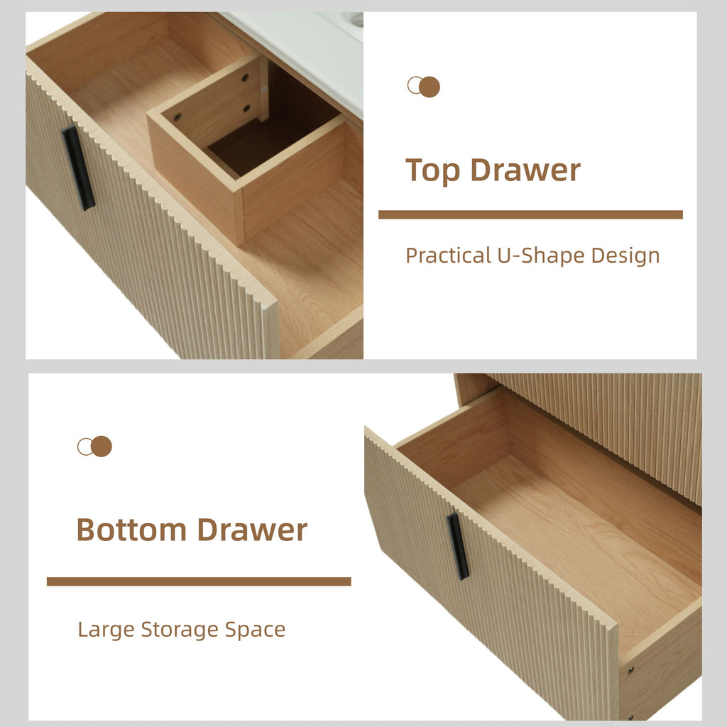 Fluted Bathroom Vanity With Sink, Full Extension Soft Close Drawers - Natural