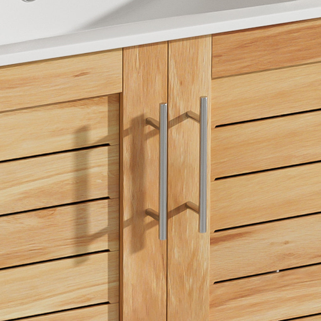 Bathroom Vanity With Ceramic Sink, Freestanding Cabinet - Antique Natural / Brown
