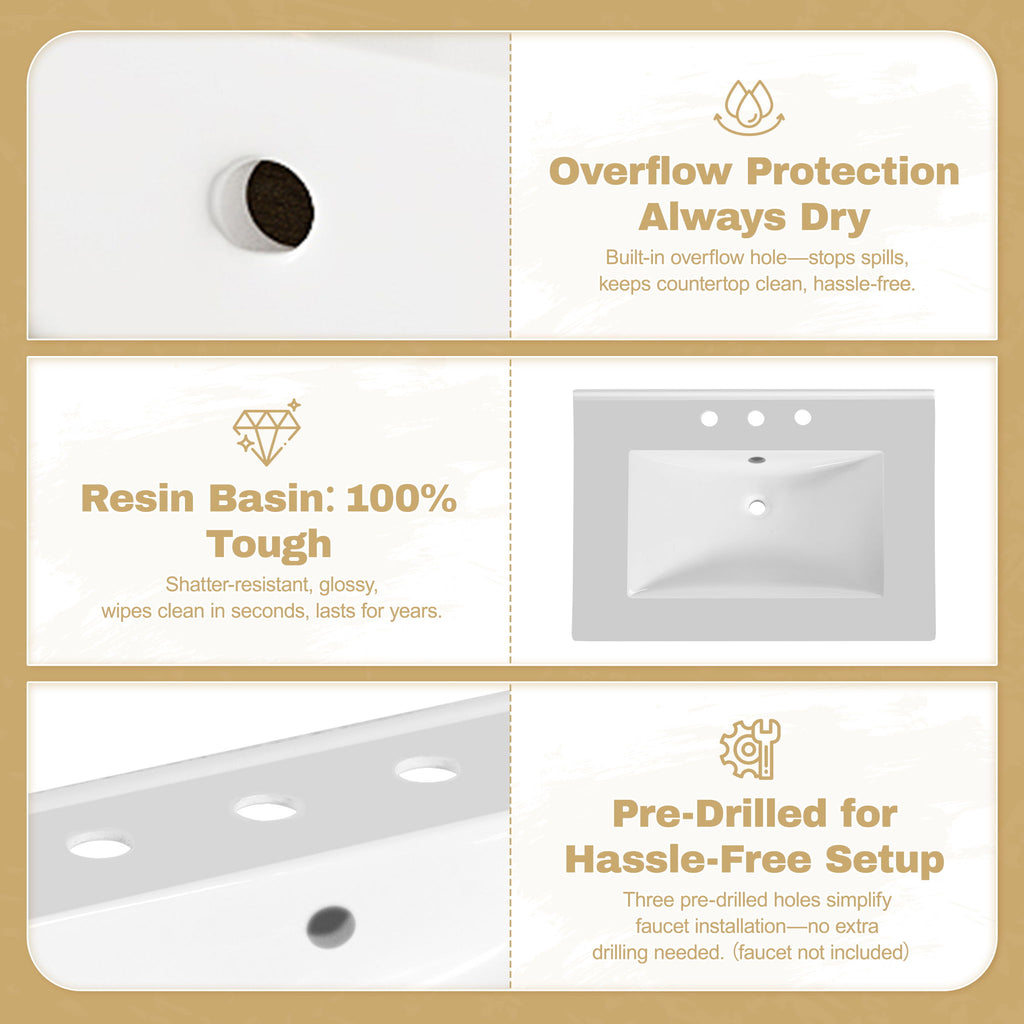 - Shatter-Resistant Resin Basin: Durable, non-porous surface resists cracks and wipes clean with minimal effort.