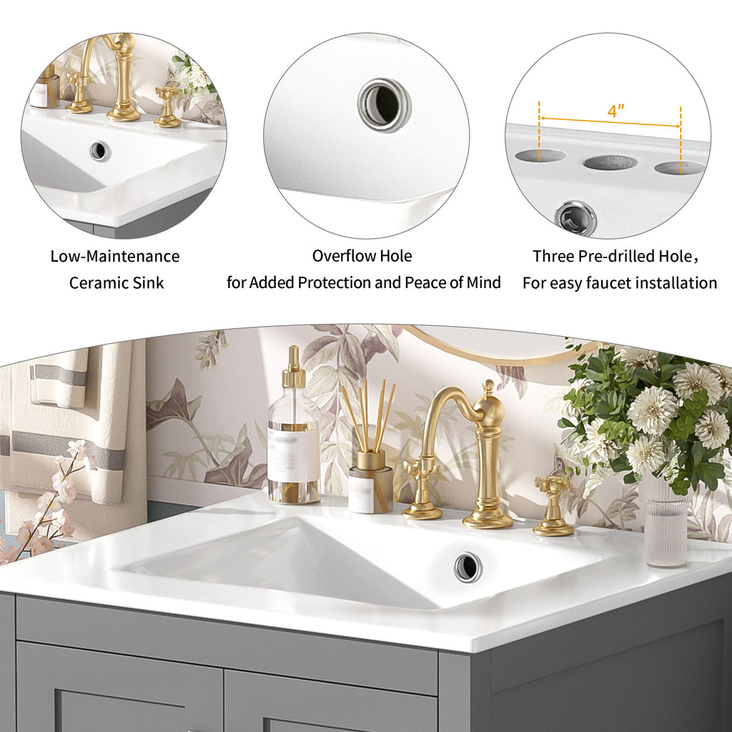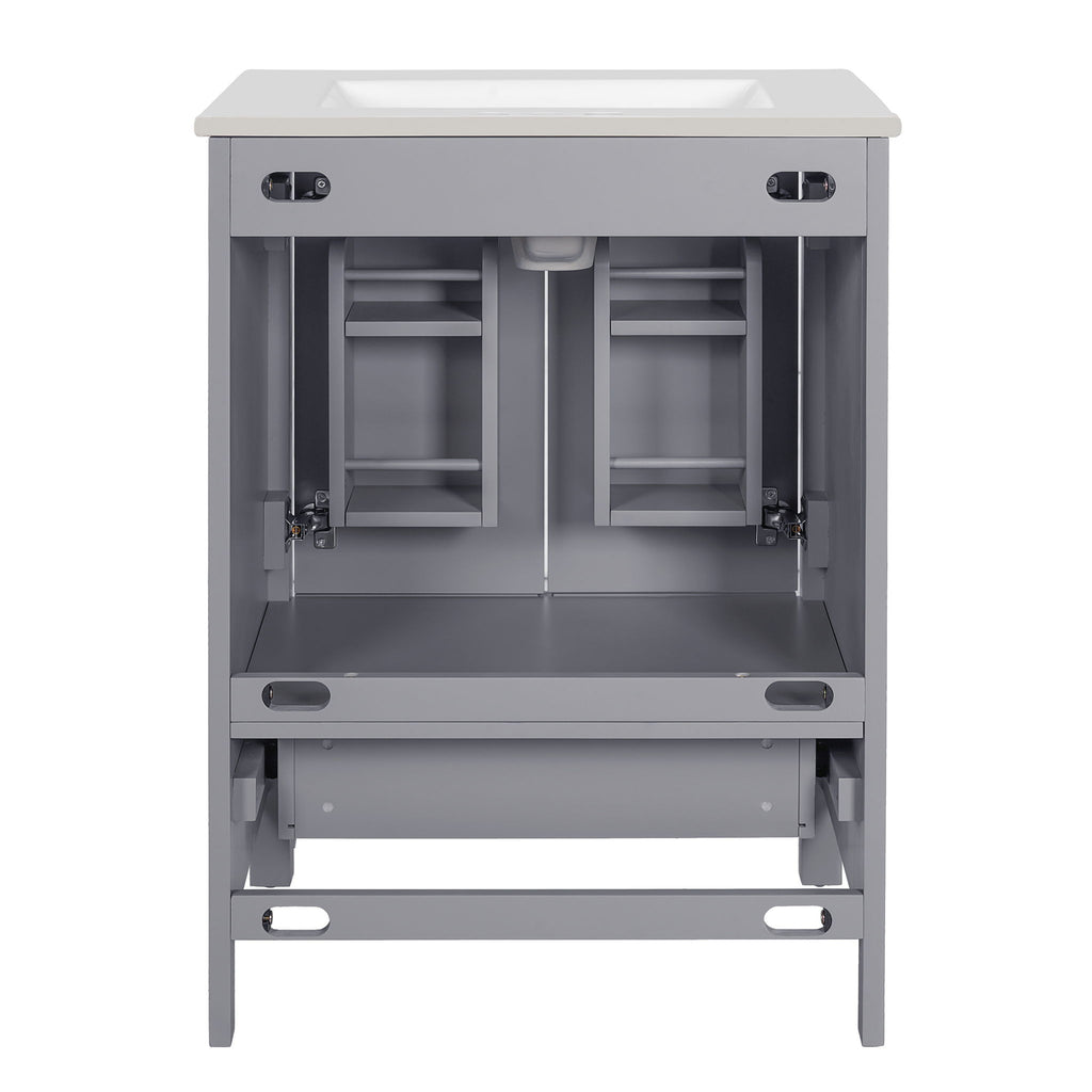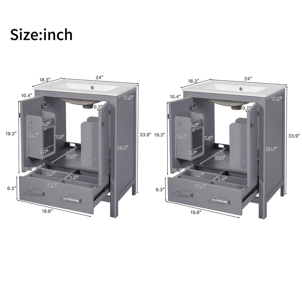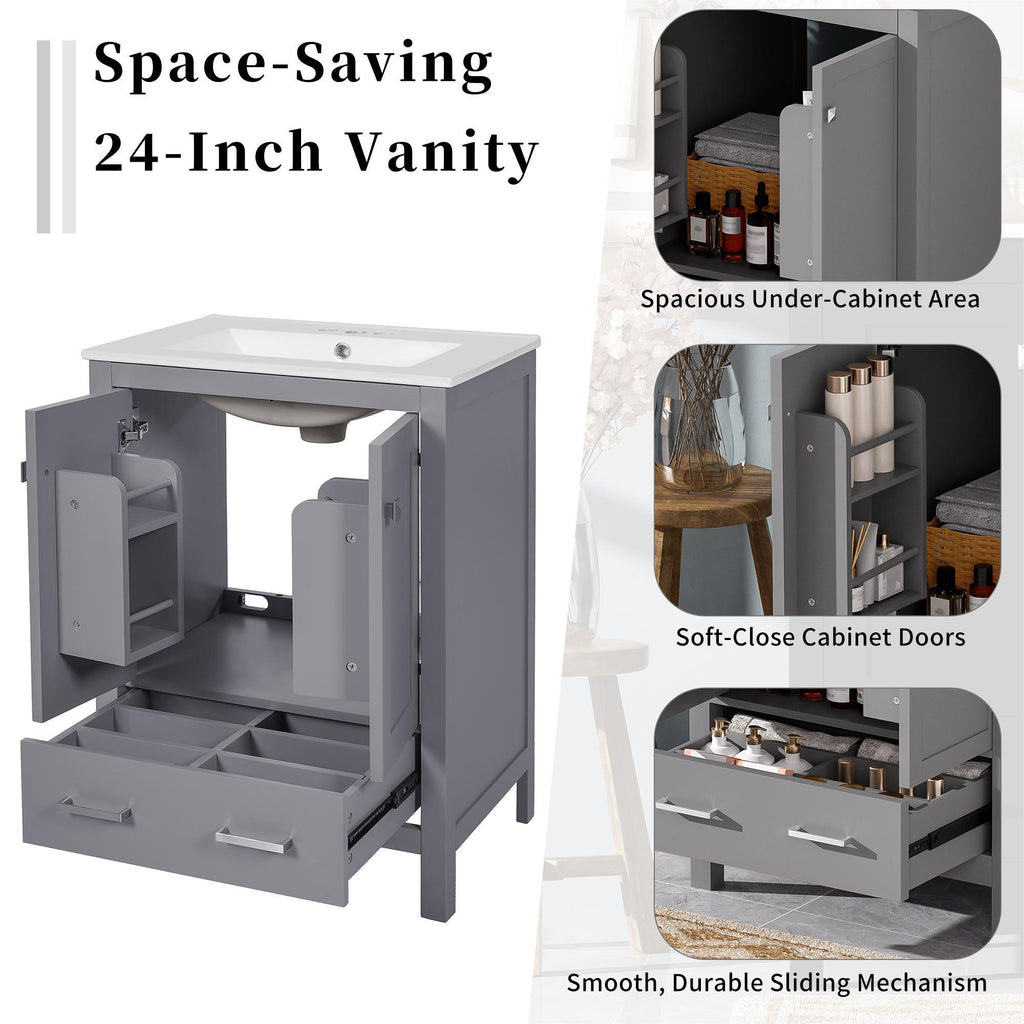 24" Bathroom Vanity With Integrated Undermount Sink, 2 Doors 1 Drawer, Soft Close Hinges, - Gray