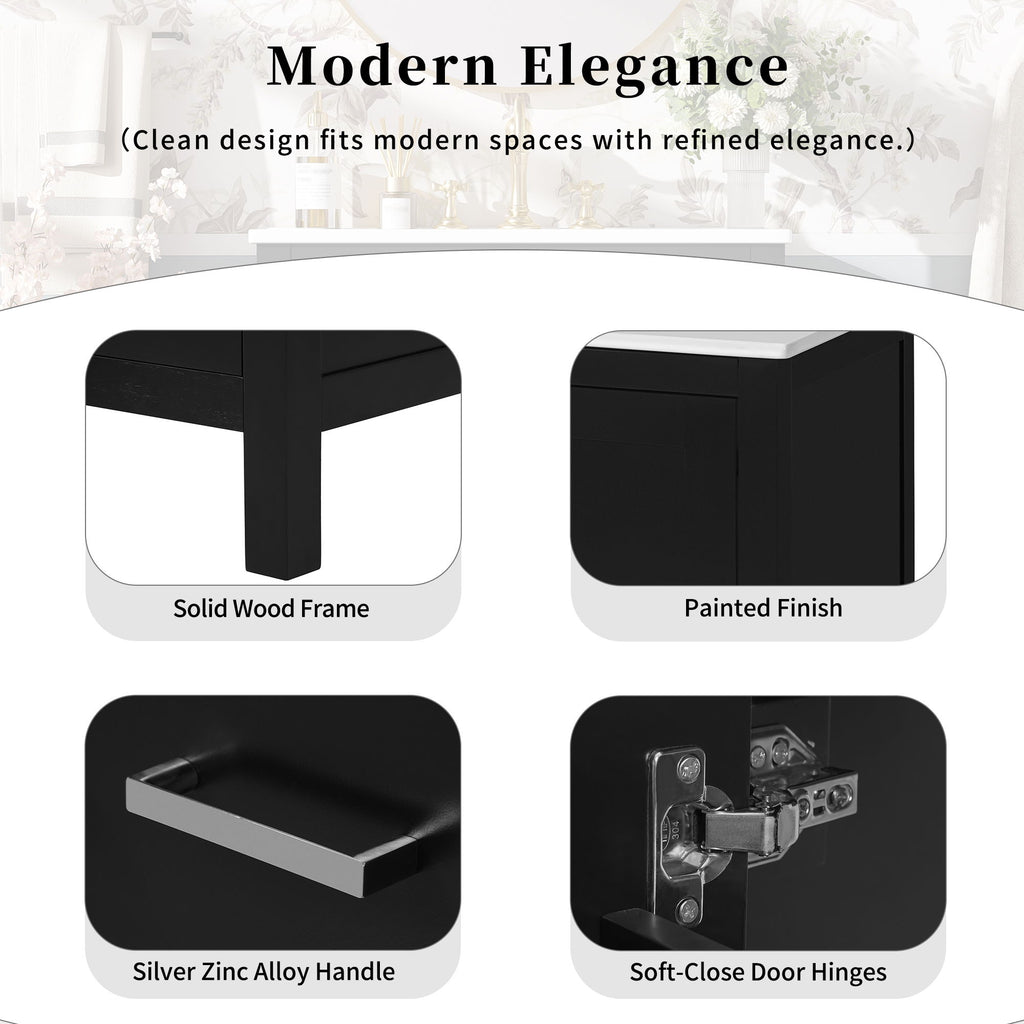24" Bathroom Vanity With Integrated Undermount Sink, 2 Doors And 1 Drawer, Soft Close Hinges - Black